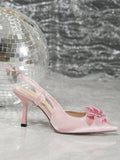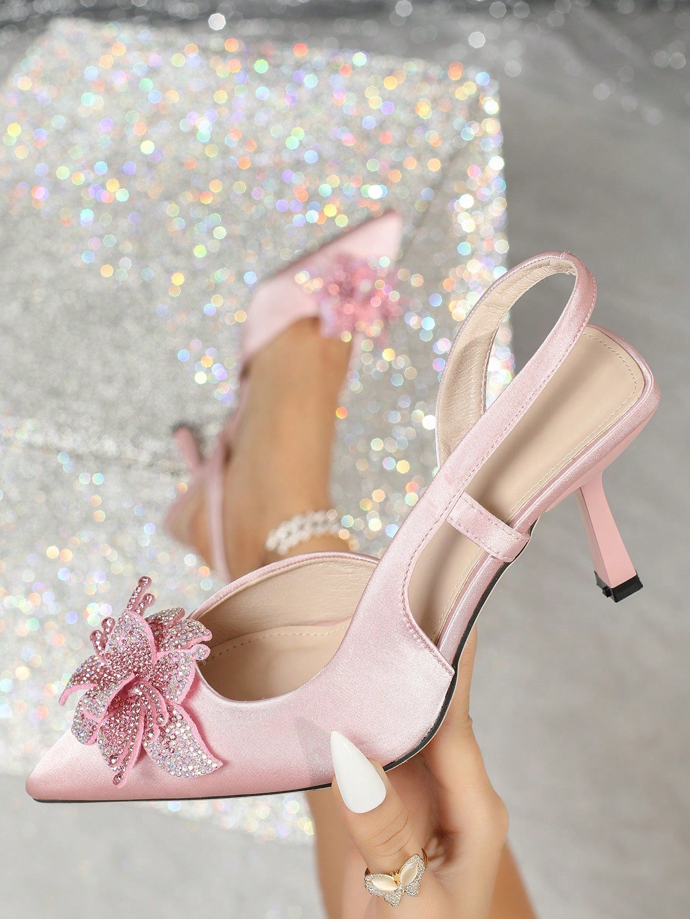 Pink Flower Delight: Silk Dress, Rhinestone Clutch, and High Heeled Sandals Set