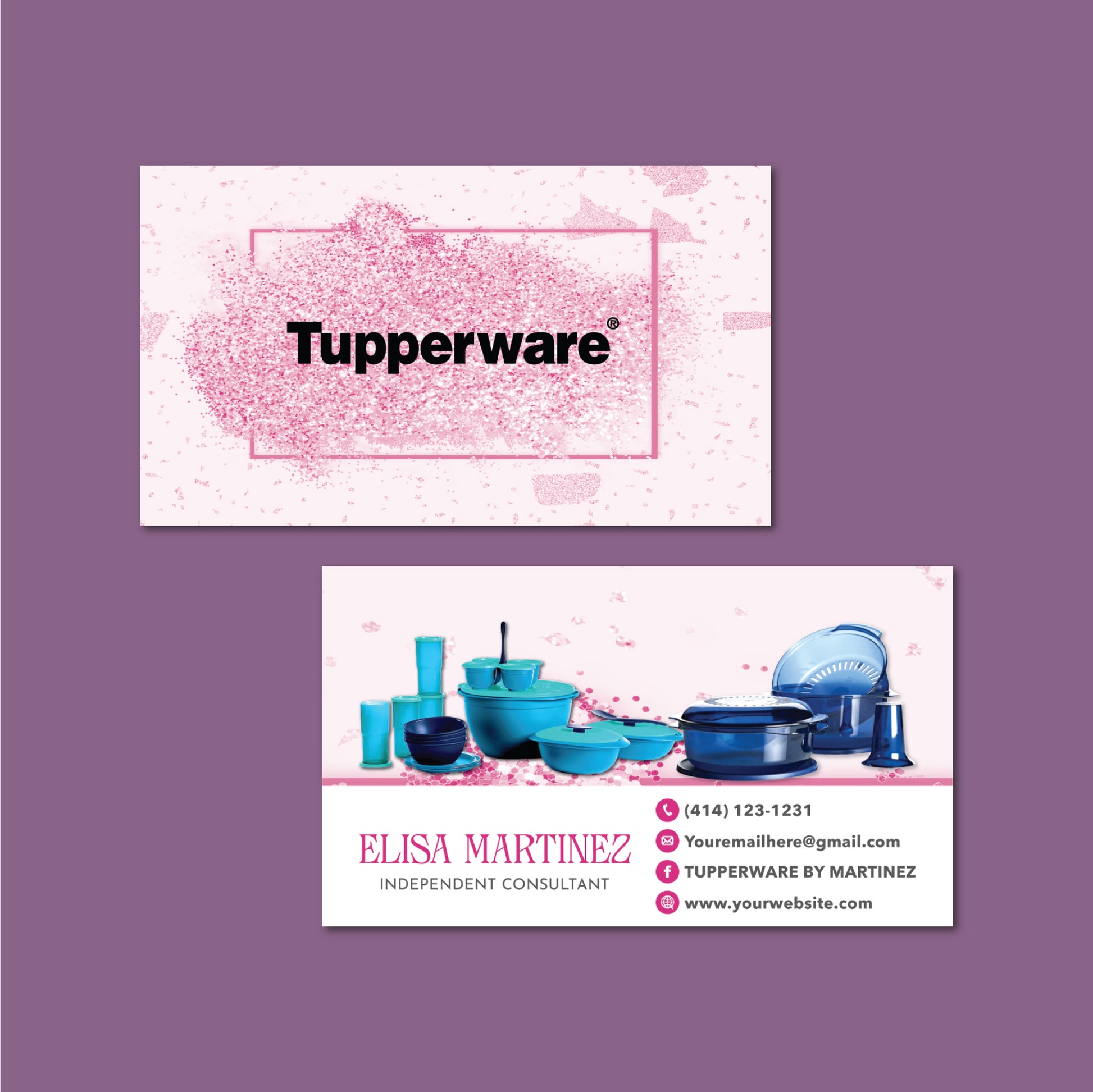 Pink Glitter Tupperware Business Card, Personalized Tupperware Business Cards TW07.