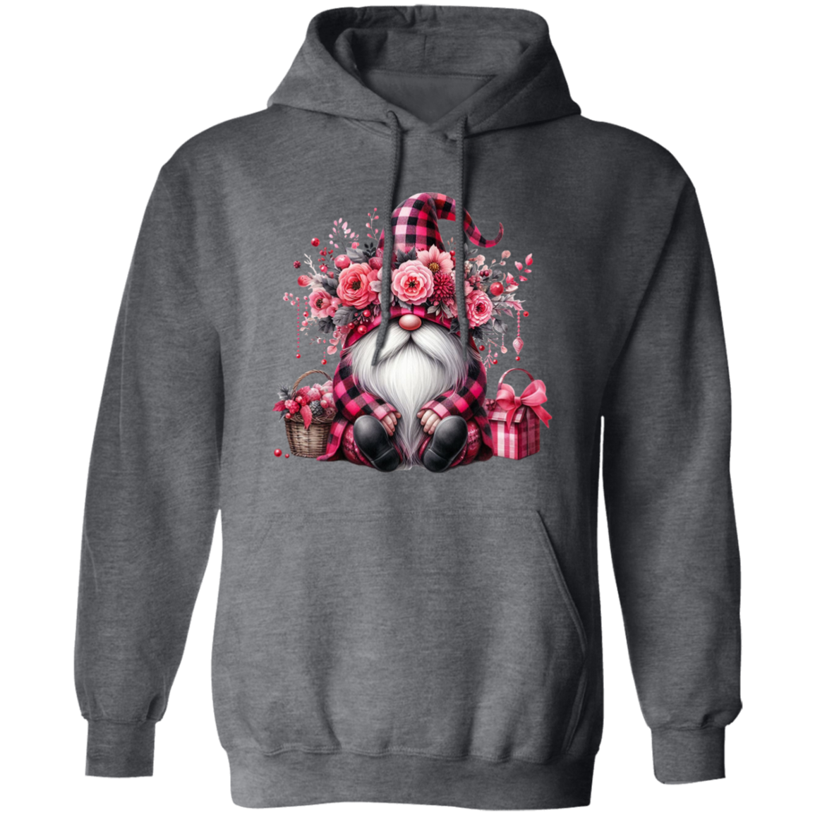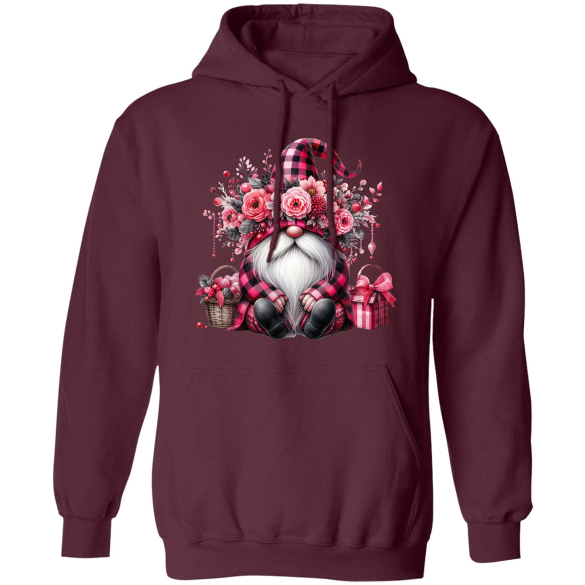 Pink Gnome, Cute Christmas, Cute Gnome, Pink Plaid Christmas Pullover Hoodie