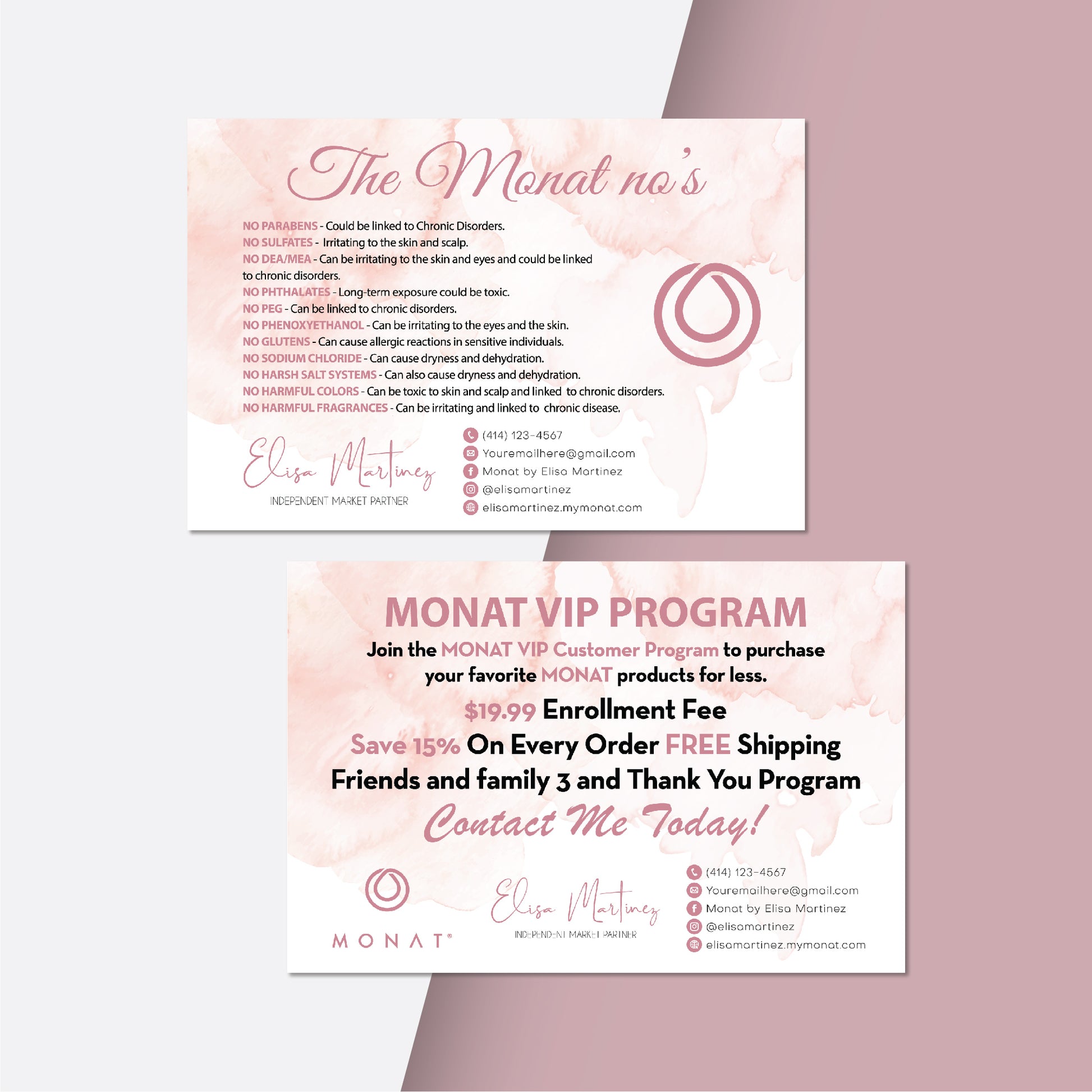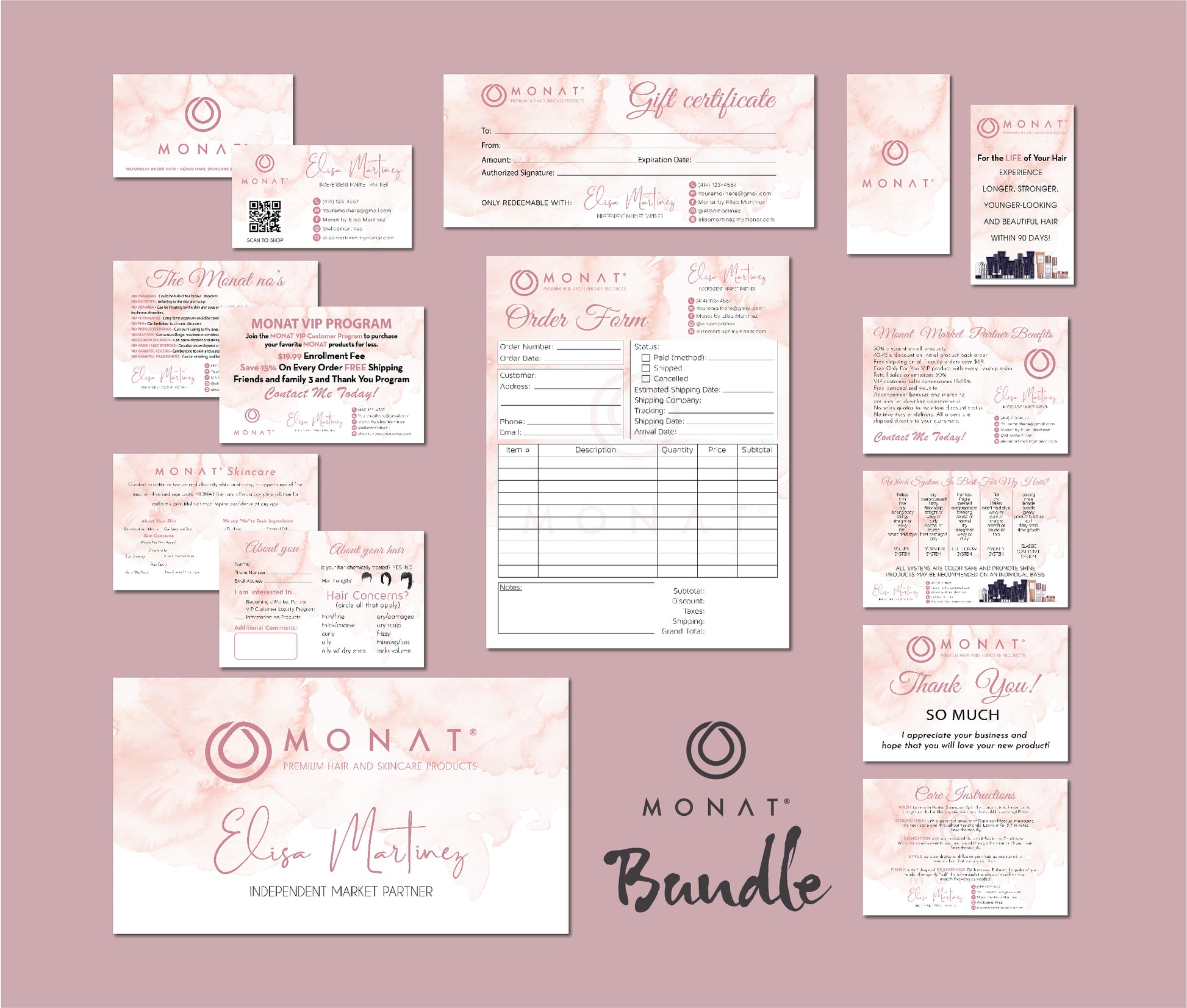 Pink Monat Marketing Bundle, Personalized Monat Full Kit Business Cards MN201