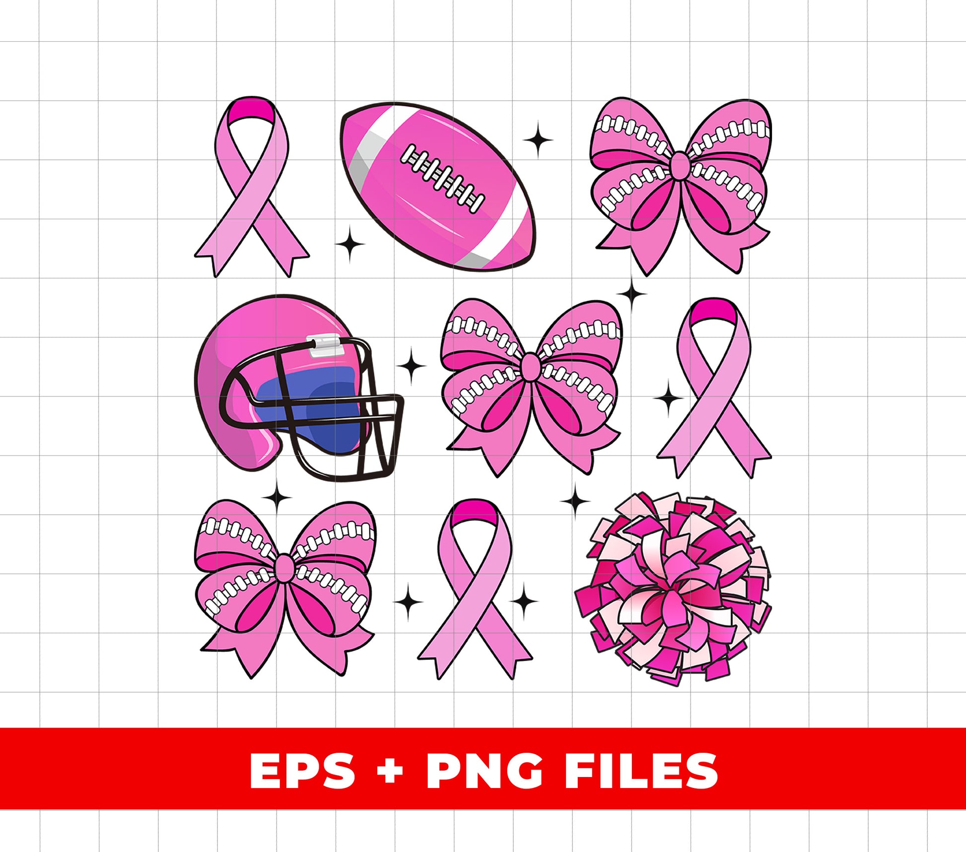 Introducing the Pink Out Tackle, Pink Coquette, and Football Coquette - the perfect combination of style and support. Show your support for cancer awareness with these digital sublimation files in PNG format. A portion of the proceeds will be donated to cancer research organizations.