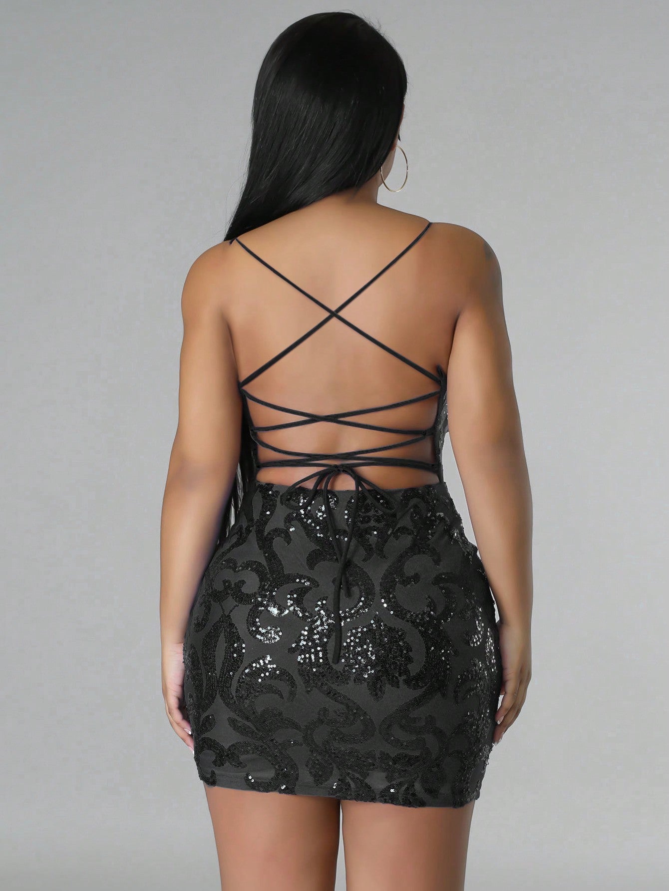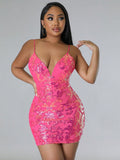 Pink Perfection: Sparkle and Shine Sparkling Sequined V-neck Dress