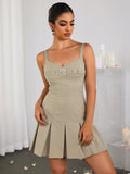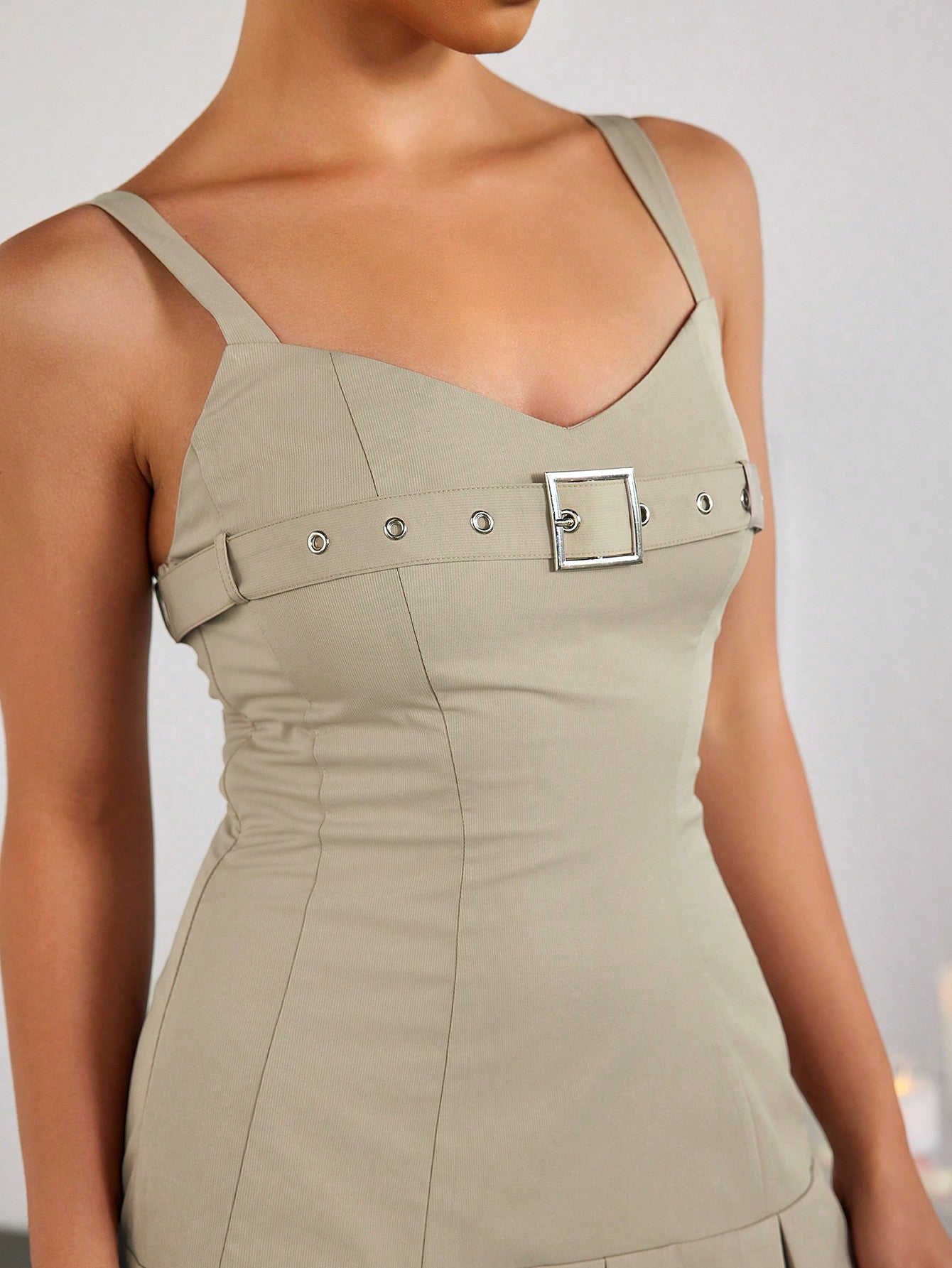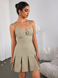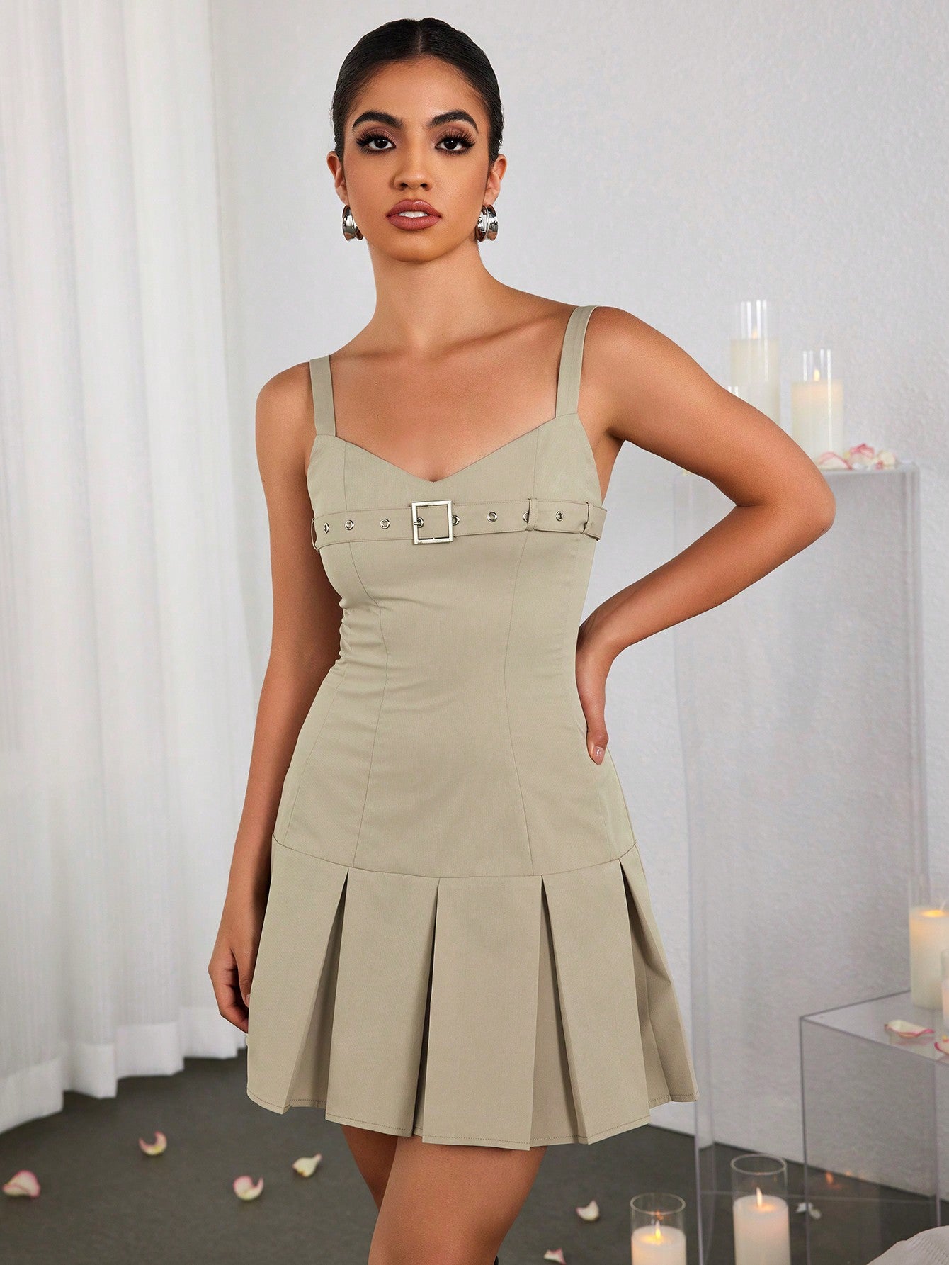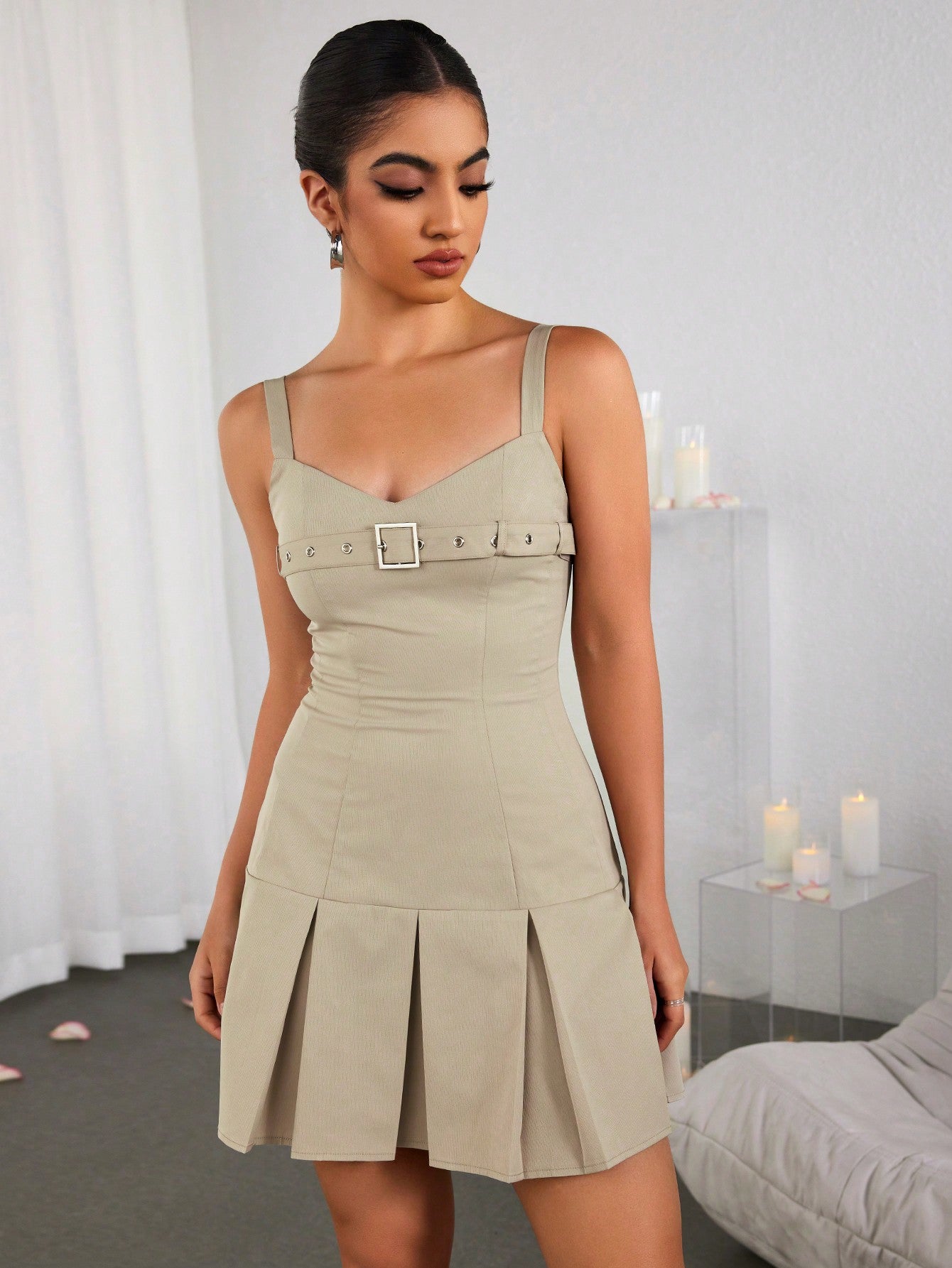 Pleated Bodycon Cami Dress with Removable Belt at Neckline