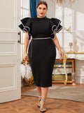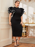 Plus Size Elegance: Layered Ruffle Trim Split Back Dress