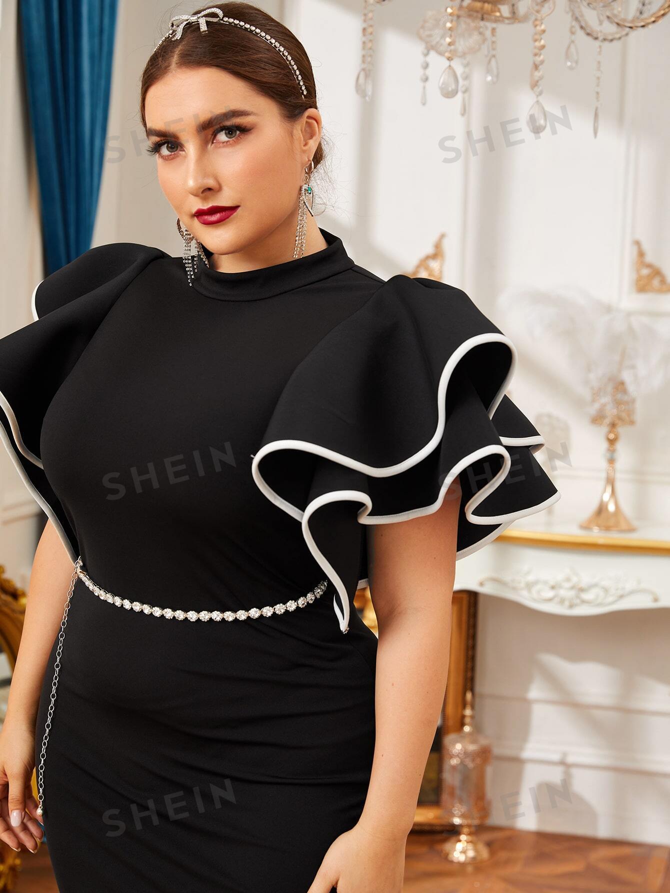 This elegant dress features a layered ruffle trim and a split back design that adds a touch of sophistication to your look. The plus size option ensures a comfortable and flattering fit for any body type. Perfect for any formal occasion, this dress will make you feel confident and stylish.