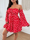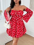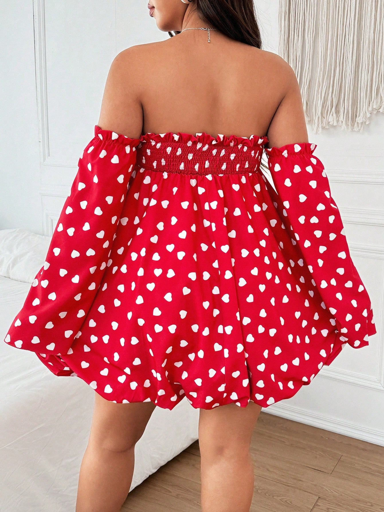 Plus Size Valentine's Day Midi Dress with Heart Print and Ruffle Hem