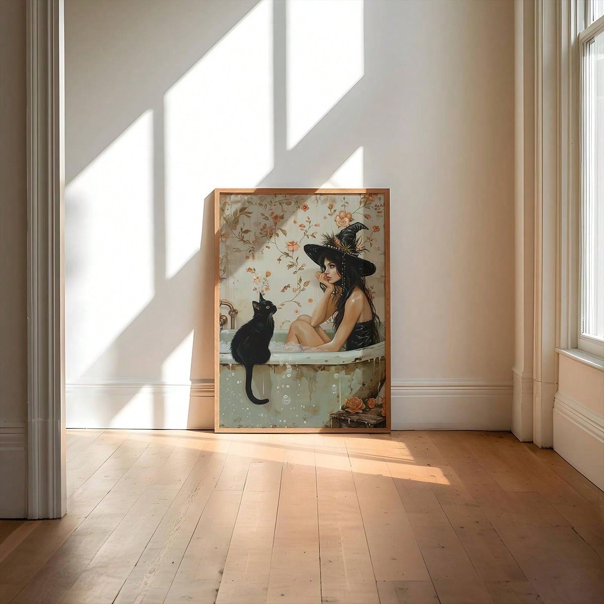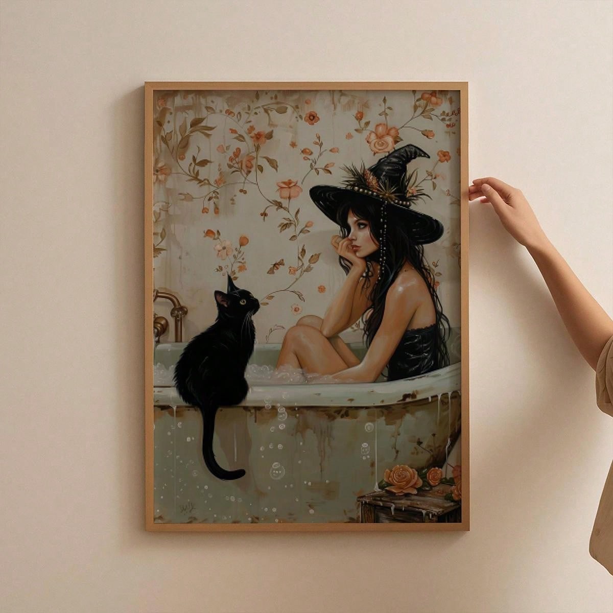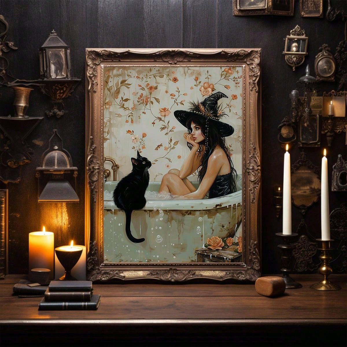 Pondering in Bathtub: Light Academia Gothic Halloween Poster - Whimsigoth Wall Art