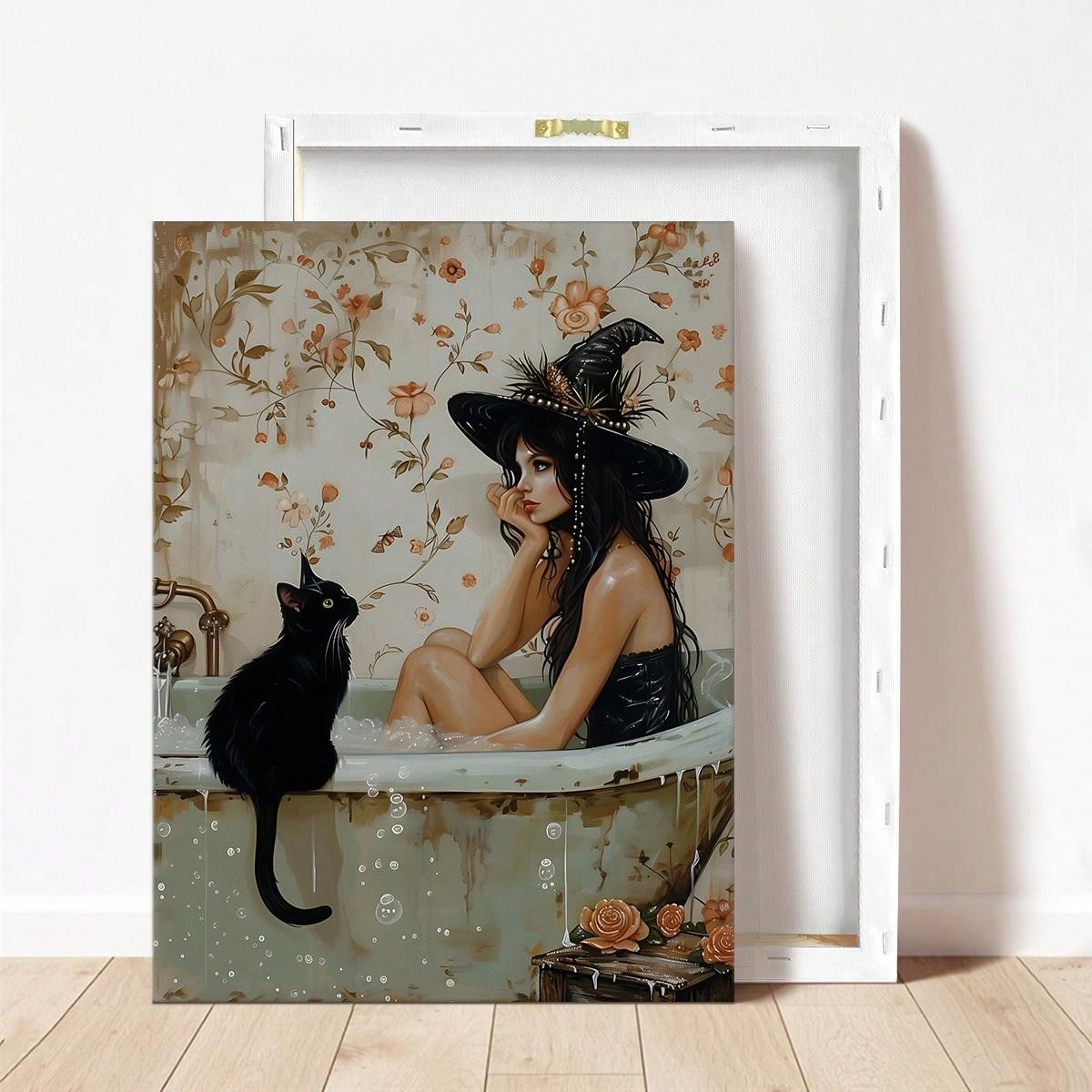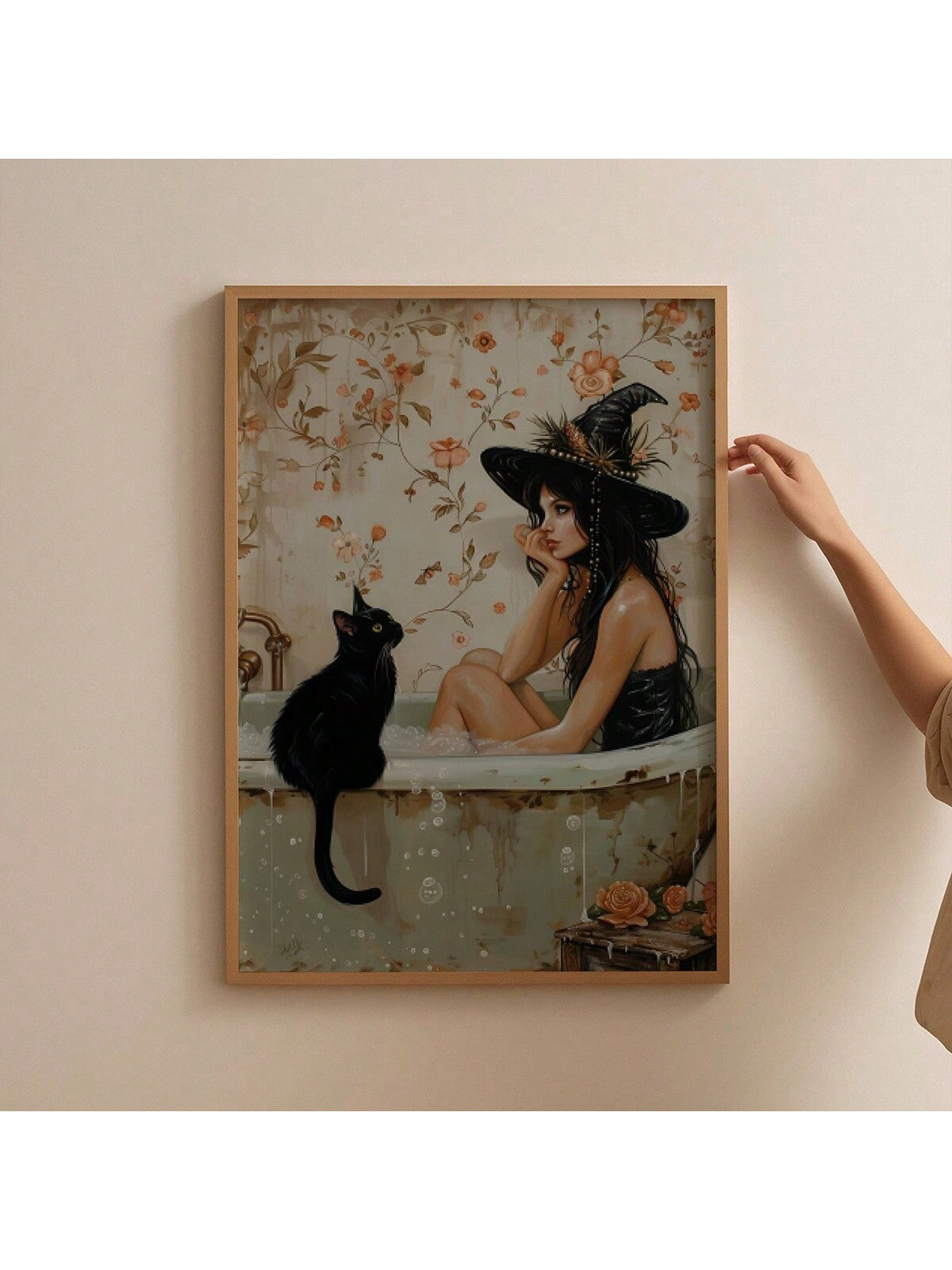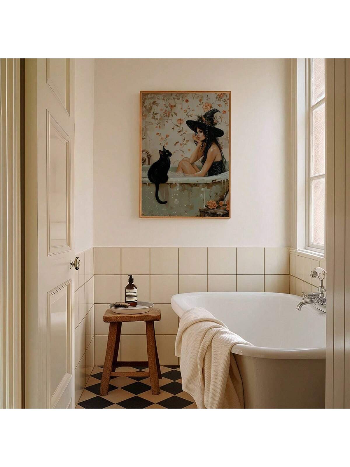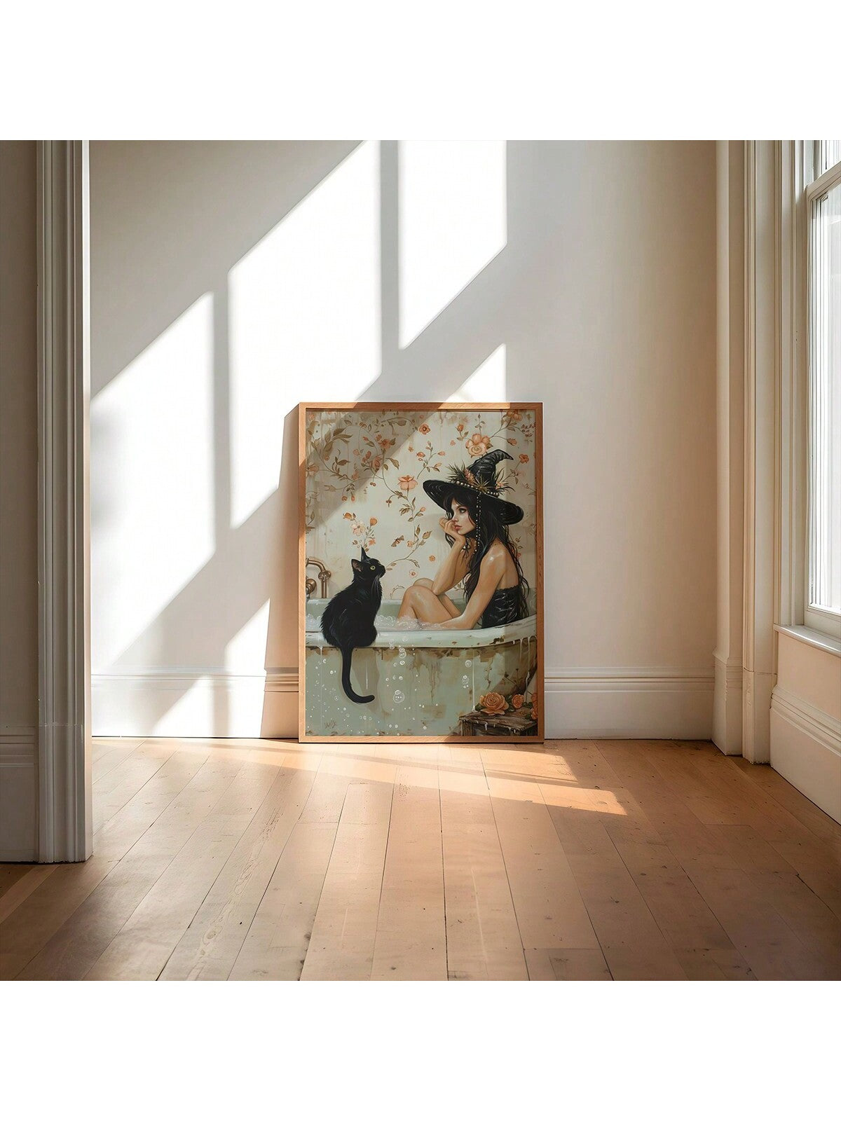 Pondering in Bathtub: Light Academia Gothic Halloween Poster - Whimsigoth Wall Art