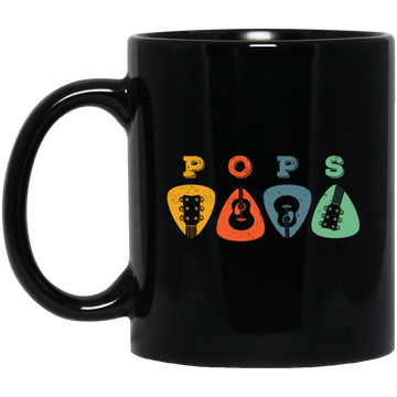 Pops Guitar, Guitar Picks, Retro Guitarist Black Mug