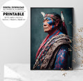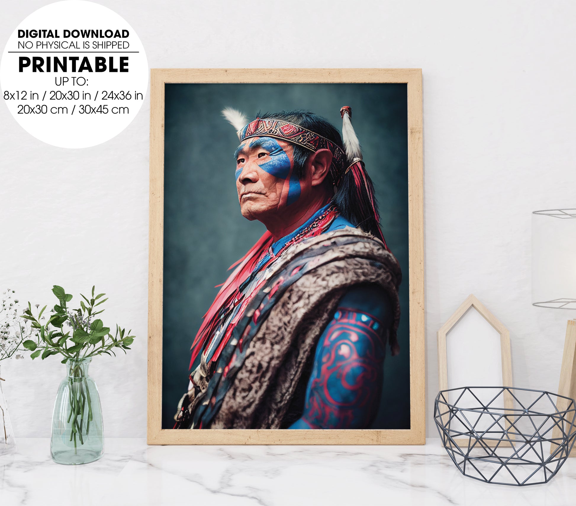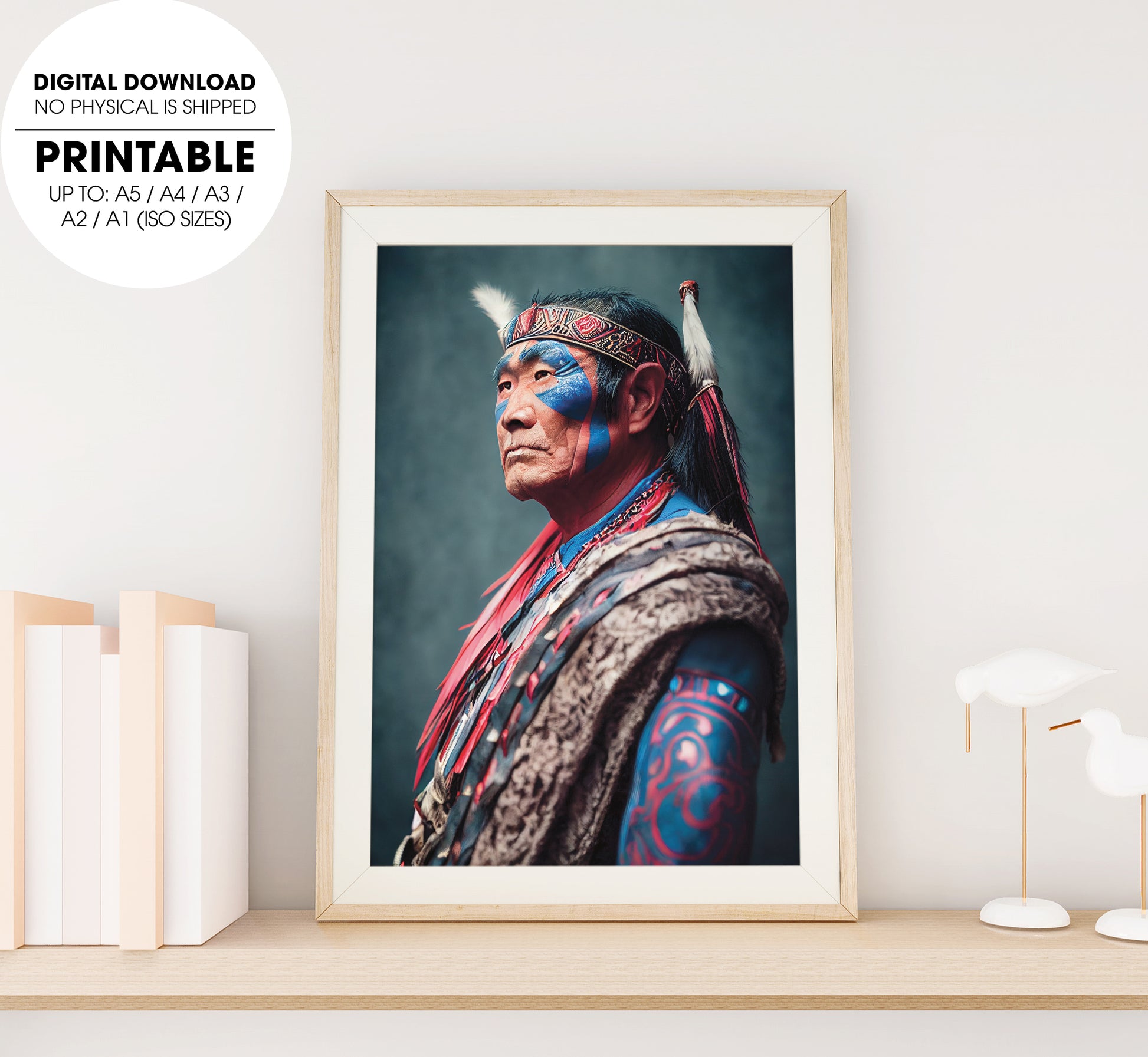 Portrait Photo Of A Asia Old Warrior Chief, Soldiers Into The Forest, Poster Design, Printable Art