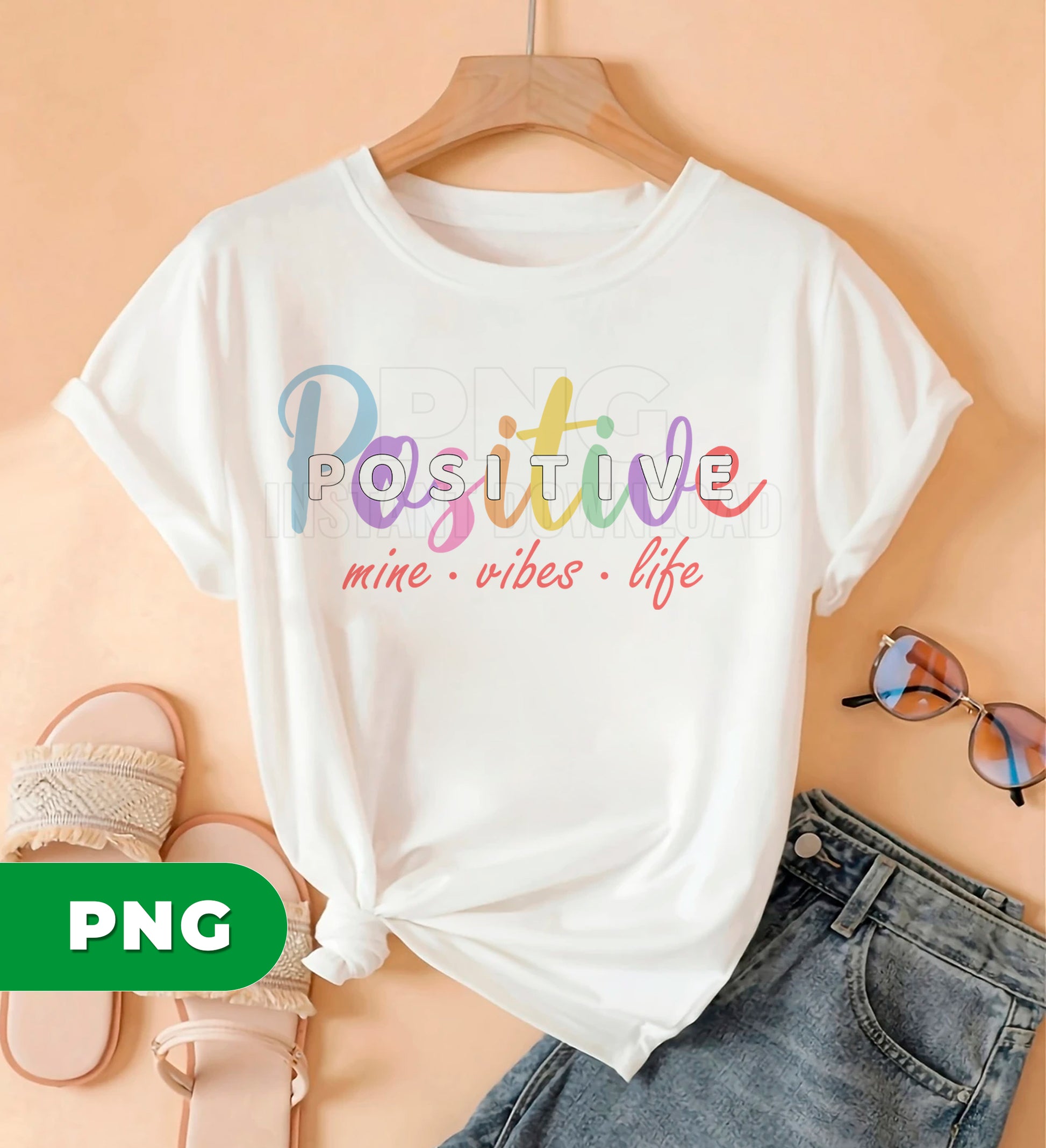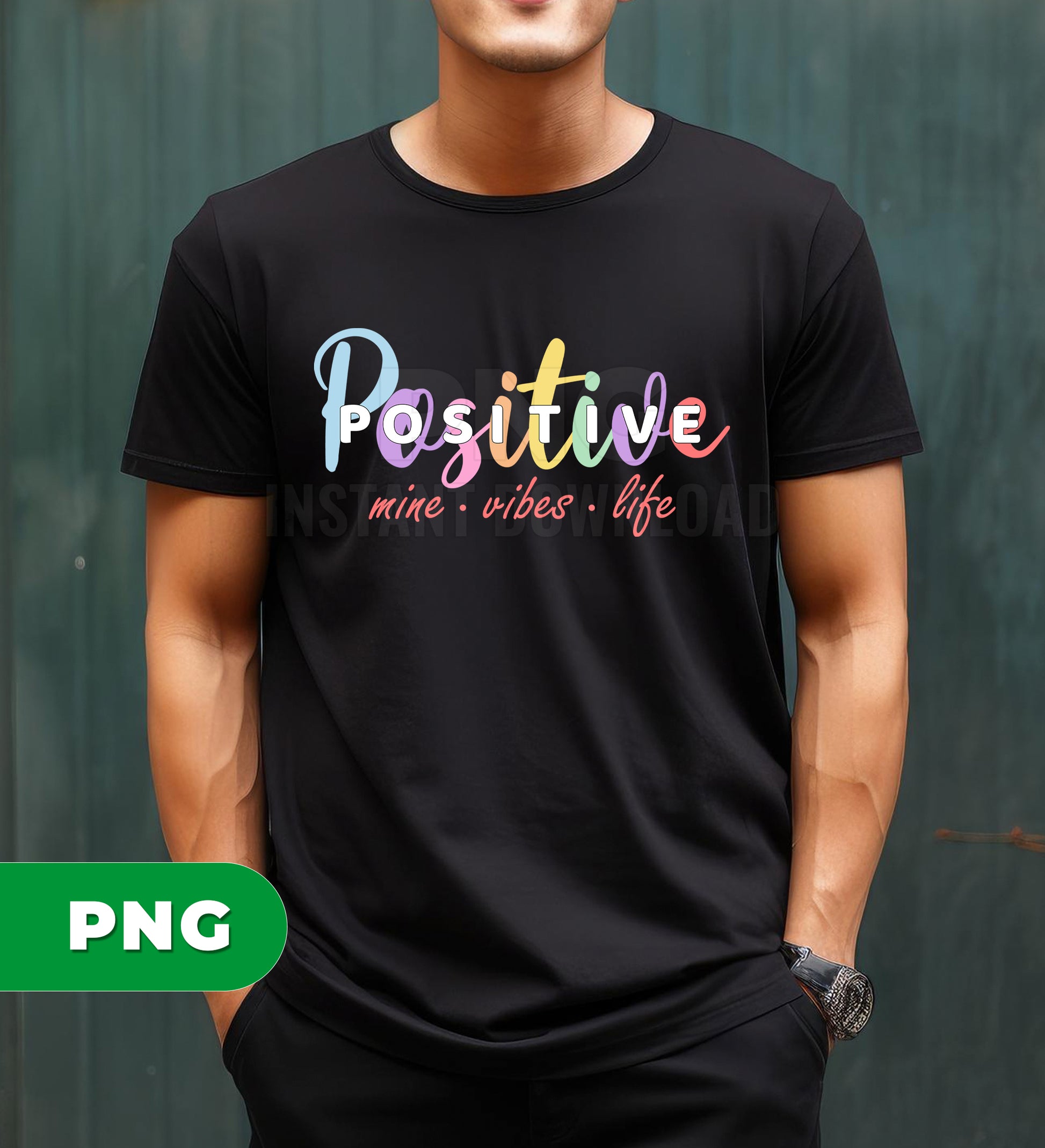 Positive Mine Vibes Life Colorful Inspirational Quote Typography Handwritten Pastel Colors Png File