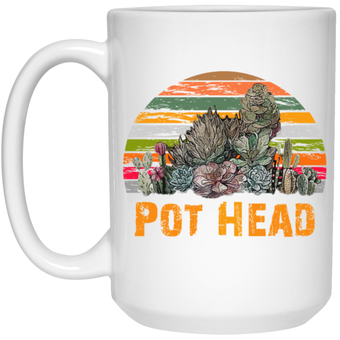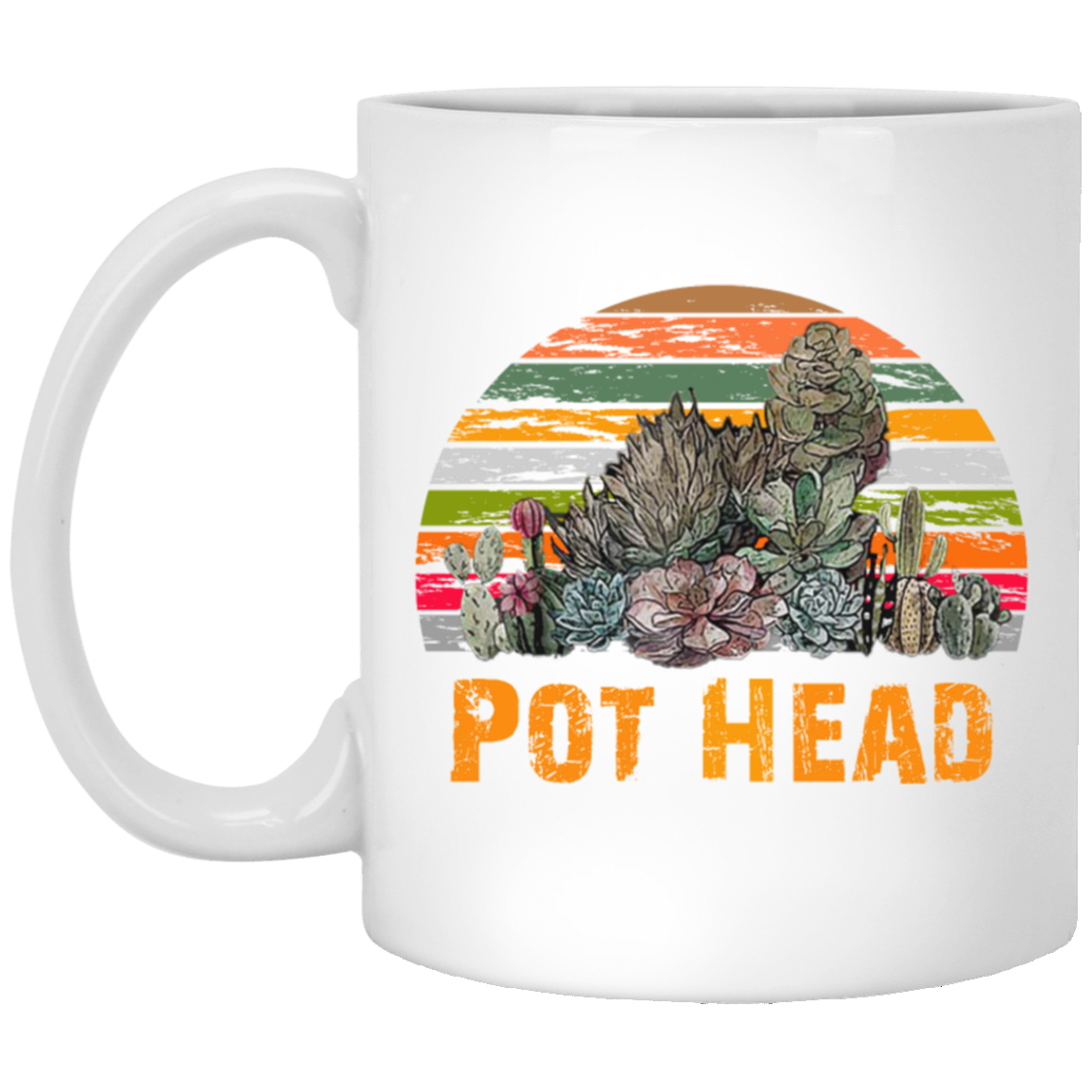 Pot Head Stone Flowers Vintage Retro Sunset White Mug