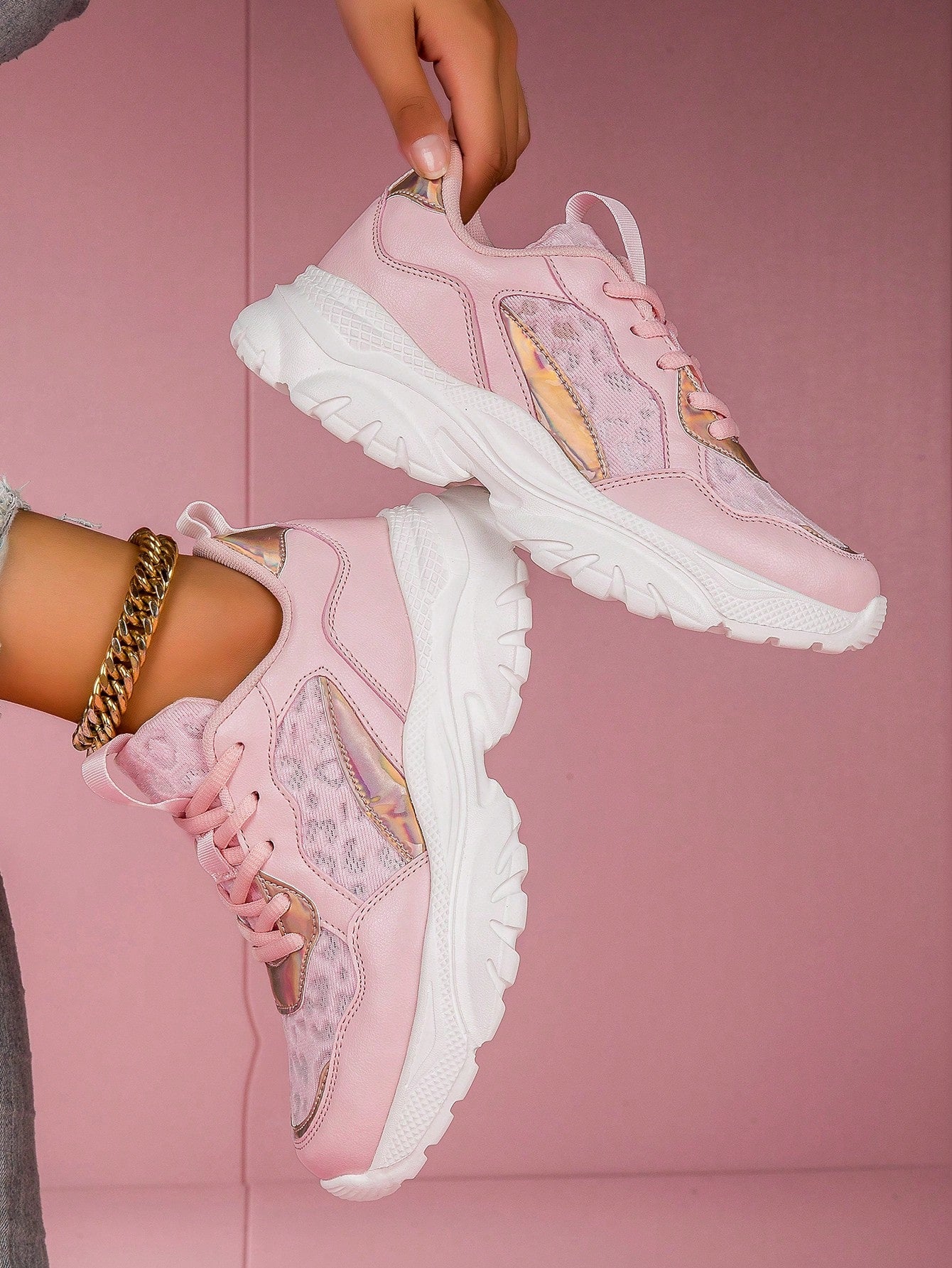 Pretty in Pink: Fashionable Lightweight Dad Sneakers with Comfortable Running Feature