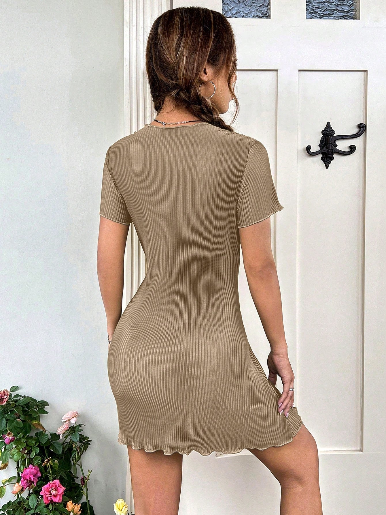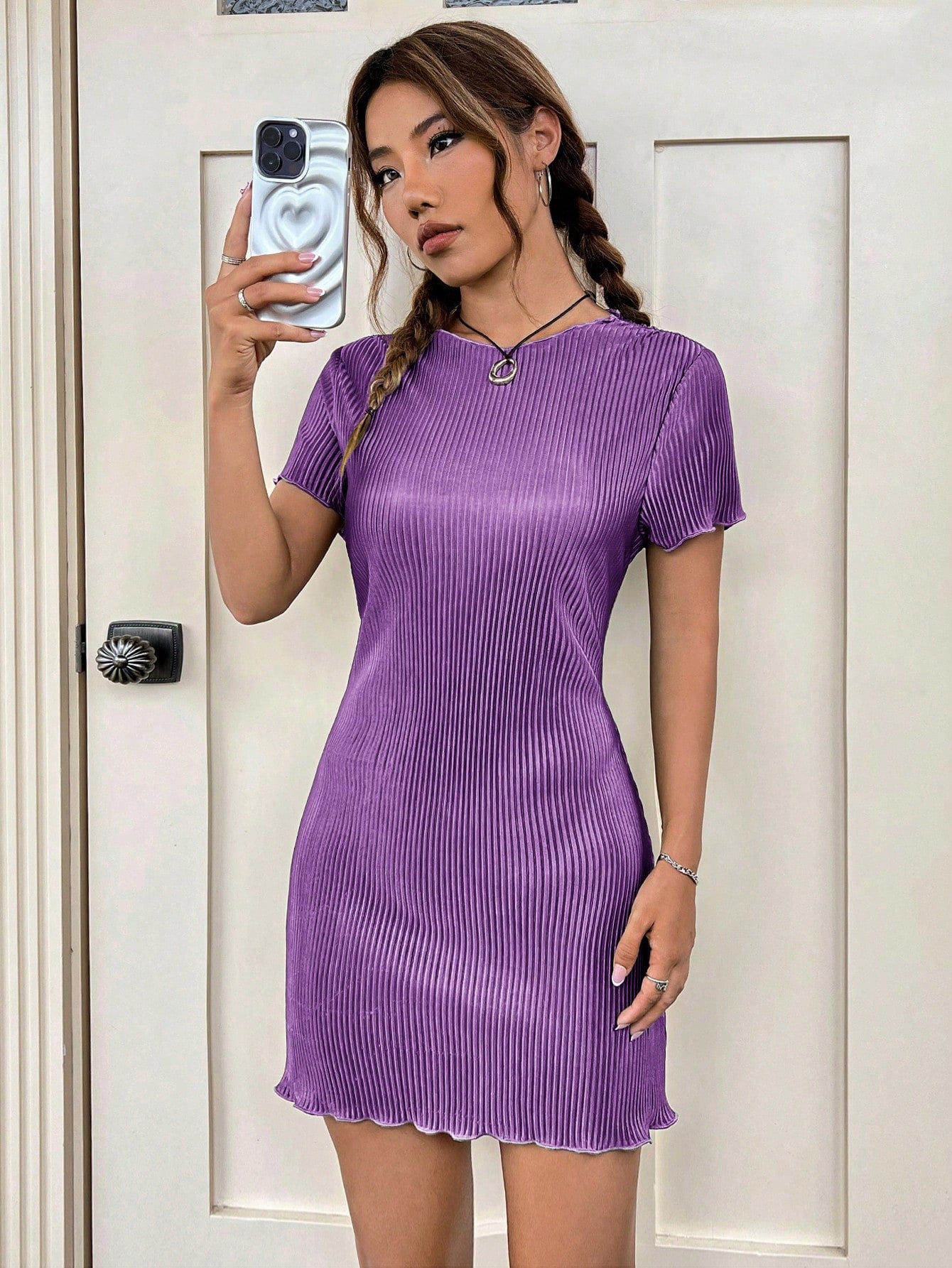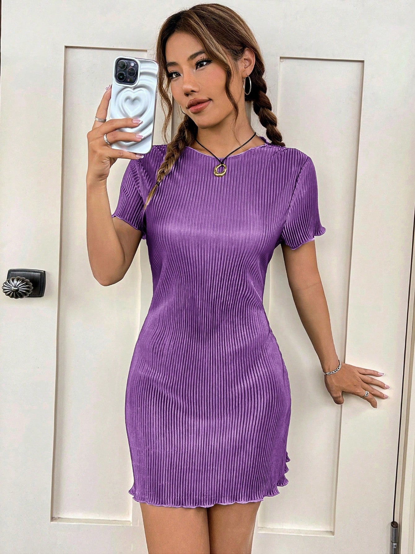 Pretty in Pleats: Solid Lettuce Trim Plisse Dress