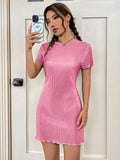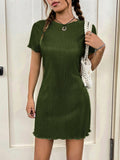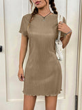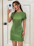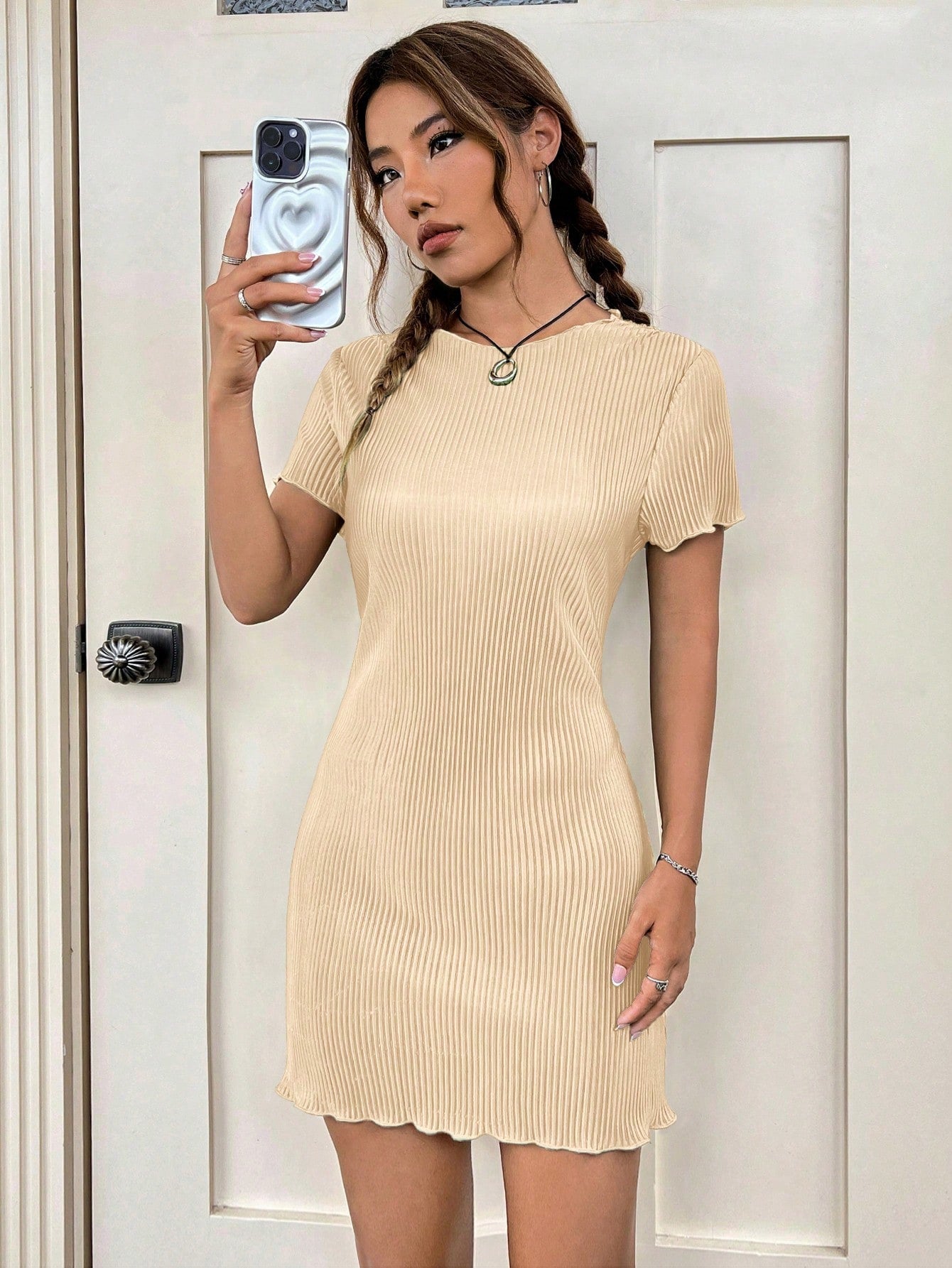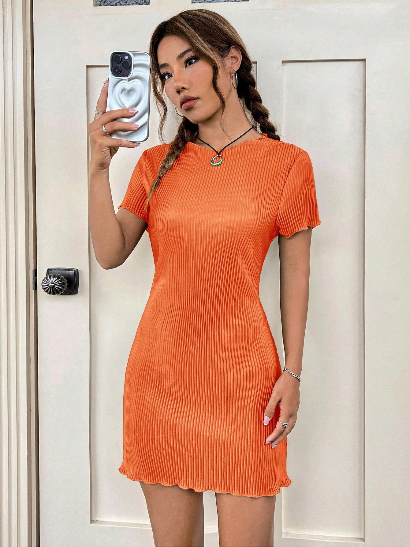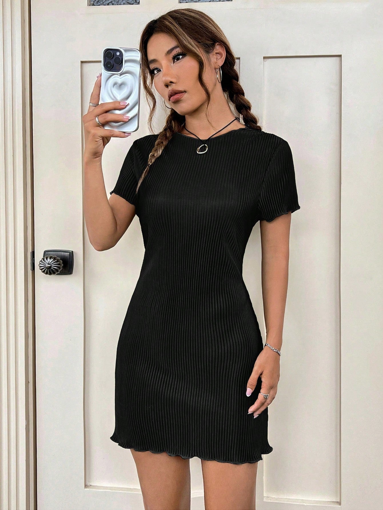 Pretty in Pleats: Solid Lettuce Trim Plisse Dress