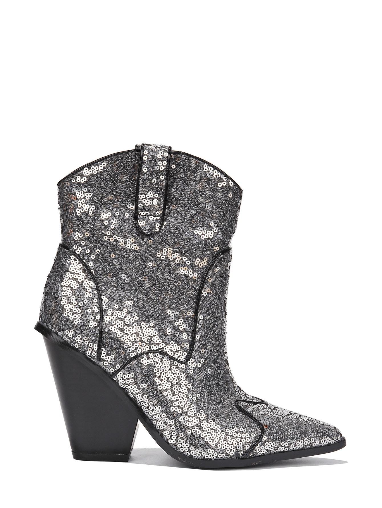 Elevate your style with Prida Mid Block Western Sequin Ankle Booties. Featuring a mid block heel and sparkling sequin design, these booties add a touch of glamour to any outfit. Perfect for dressing up or down, they are a versatile addition to your wardrobe.