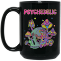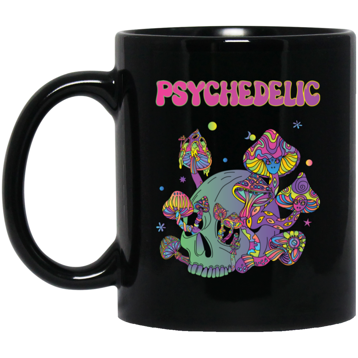 Psychedelic, Magic Mushroom, Mushroom And Skull Psycho Black Mug