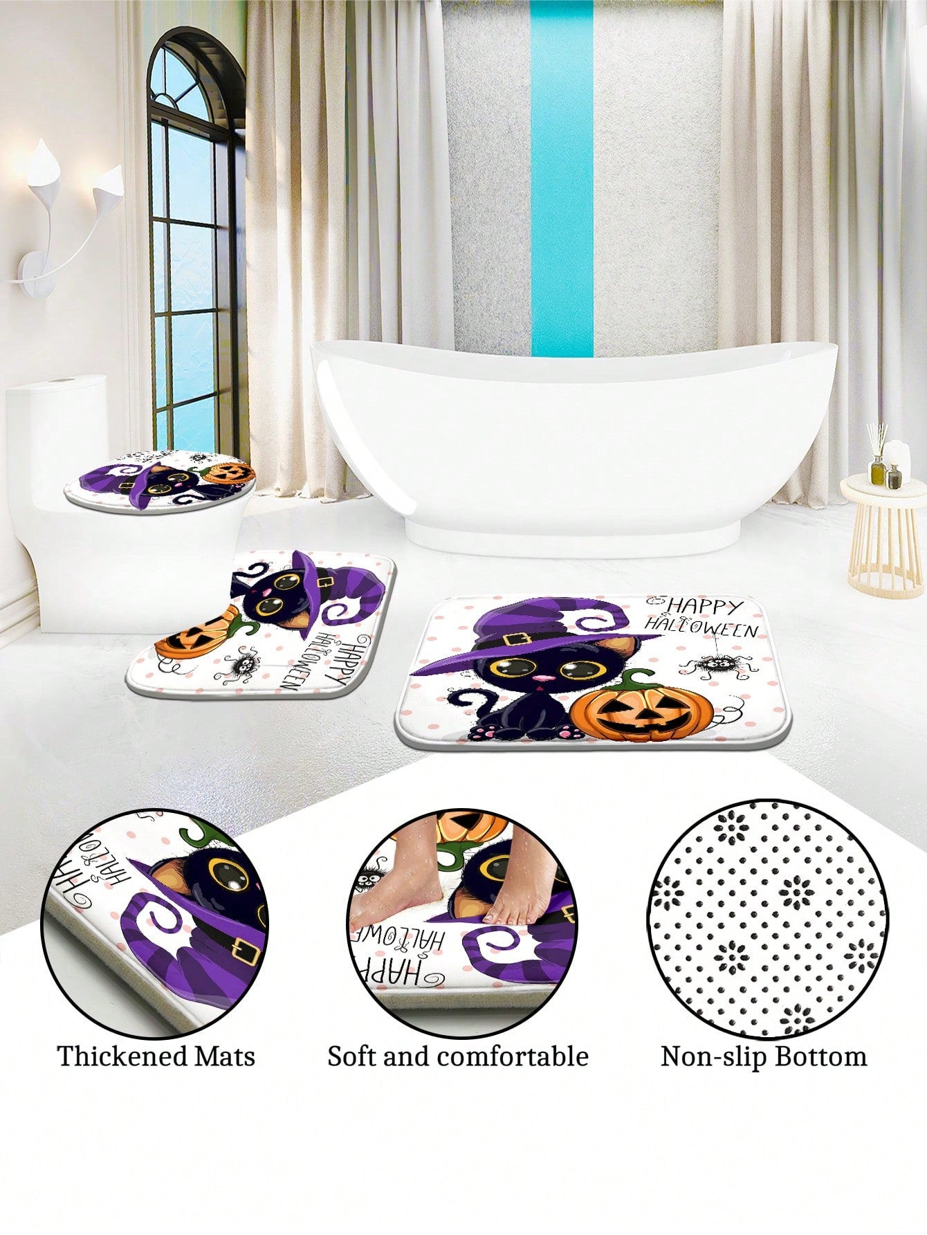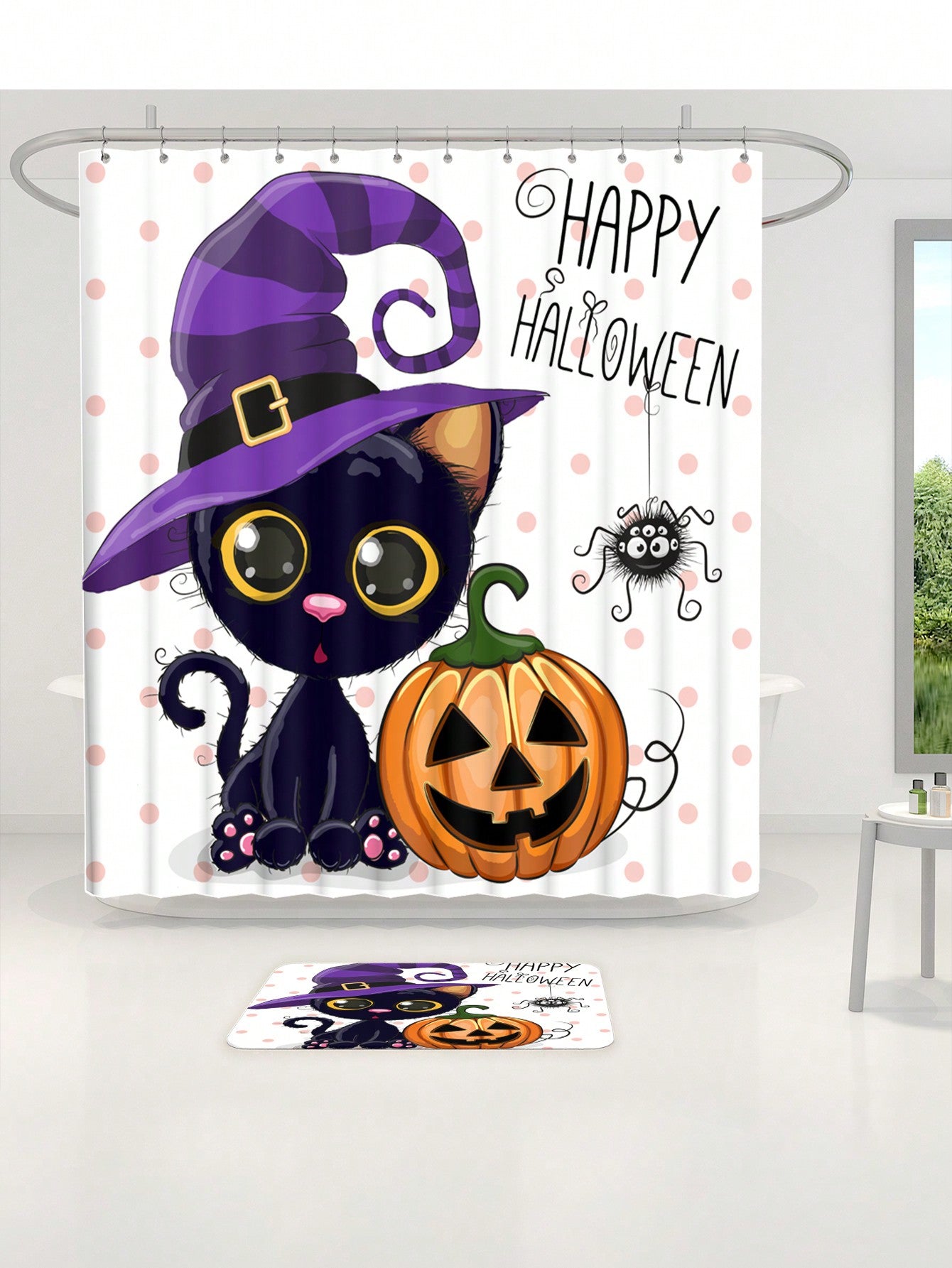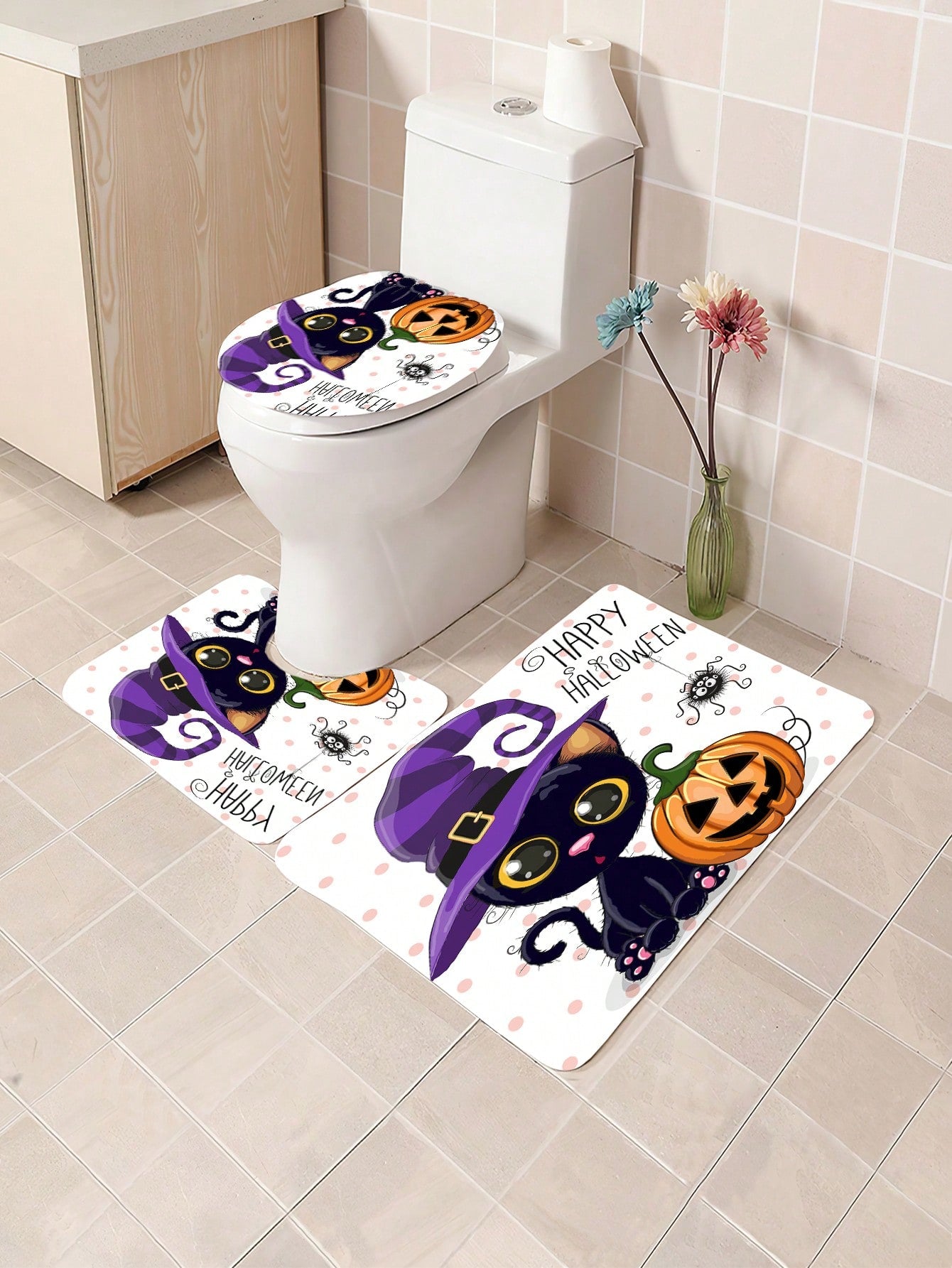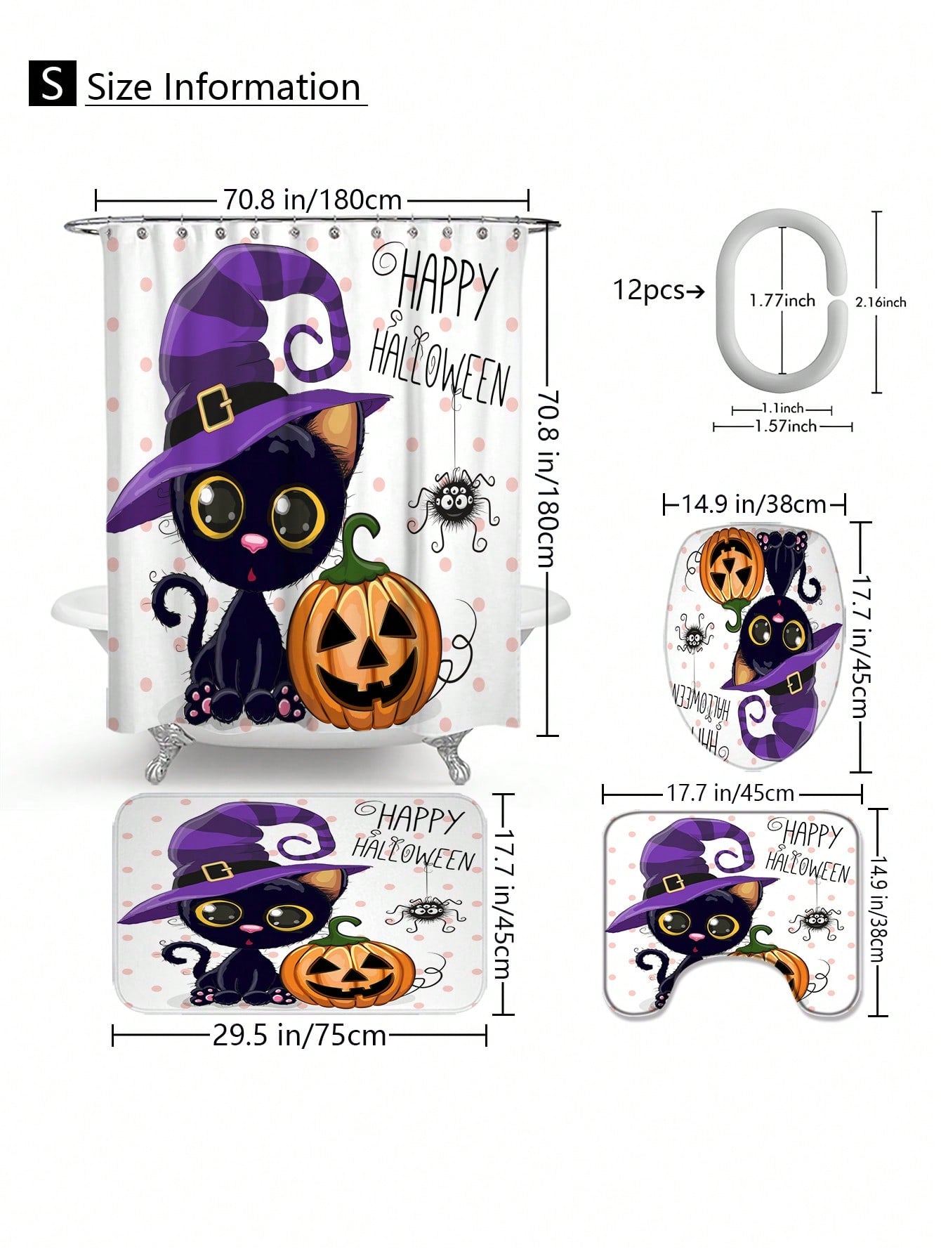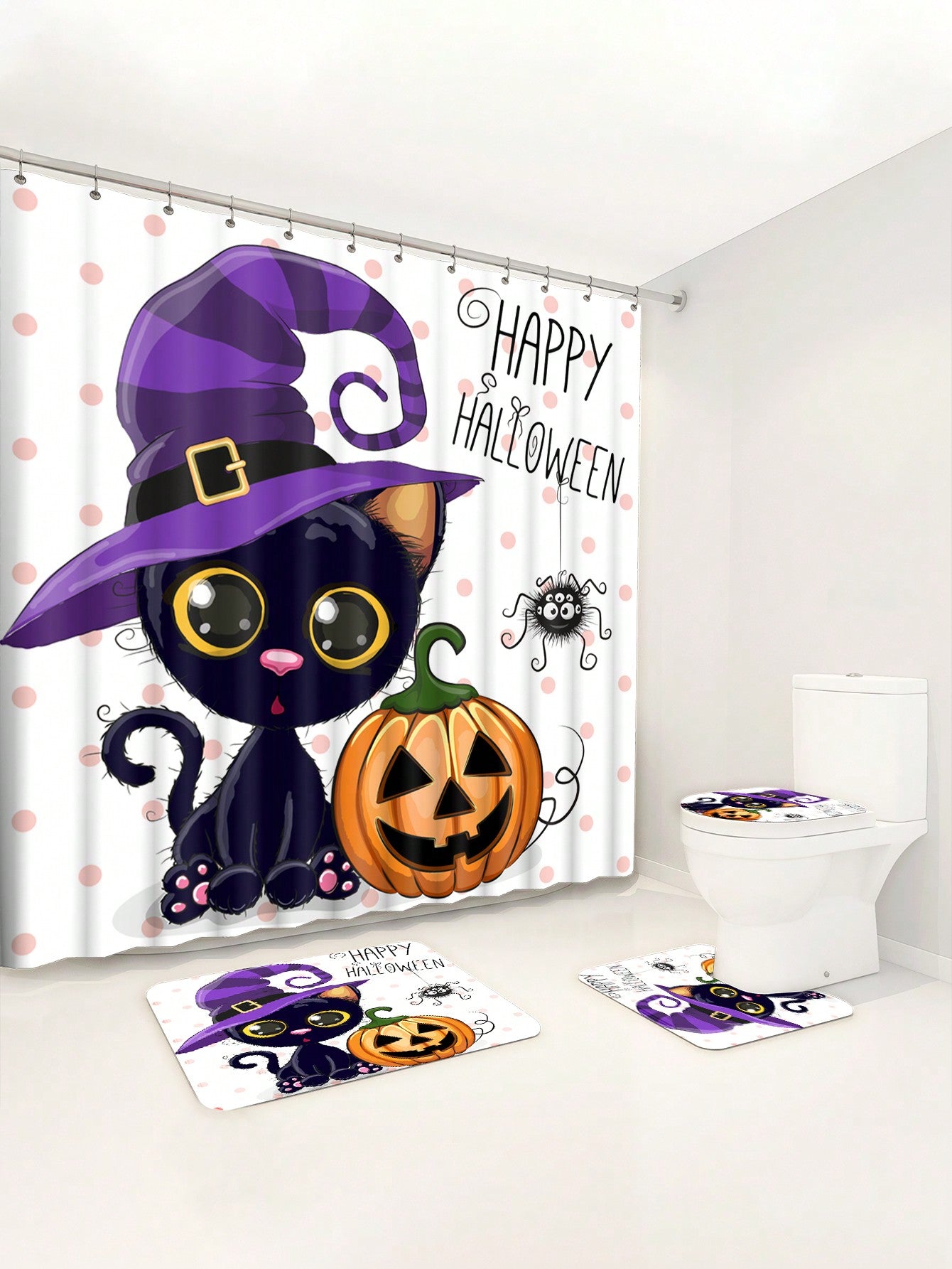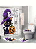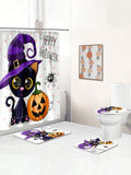 Pumpkin Cat Bathroom Set: Shower Curtain, Anti-Slip Mat, and Toilet Cover