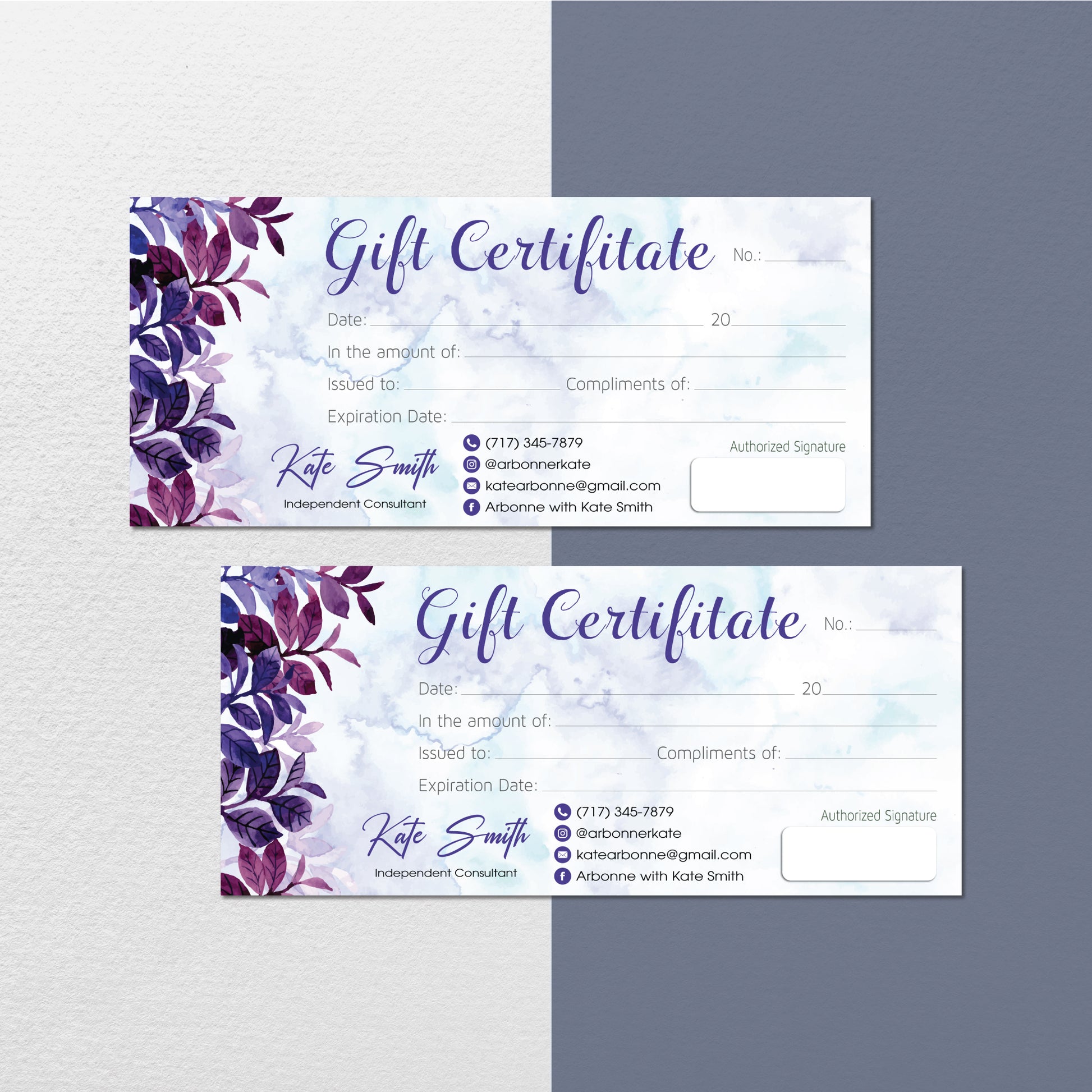Purple Hand Drawn Leaves Arbonne Gift Certificate, Personalized Arbonne Business Cards AB148