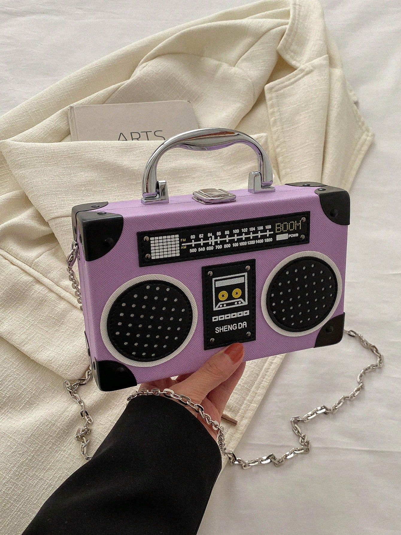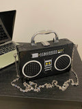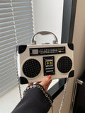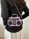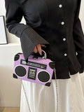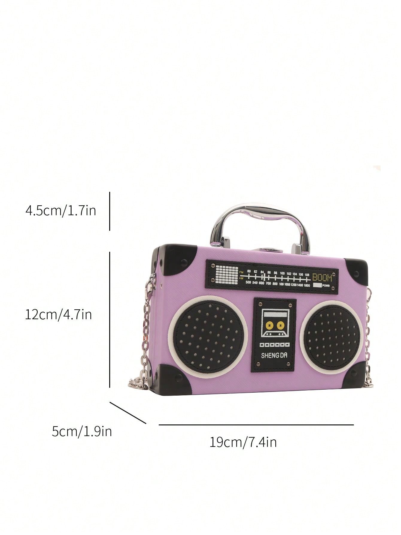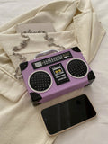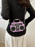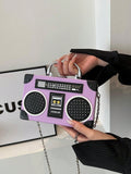 Radiant Melody: Purple Radio Handbag - Trendy Music-Inspired Crossbody Bag