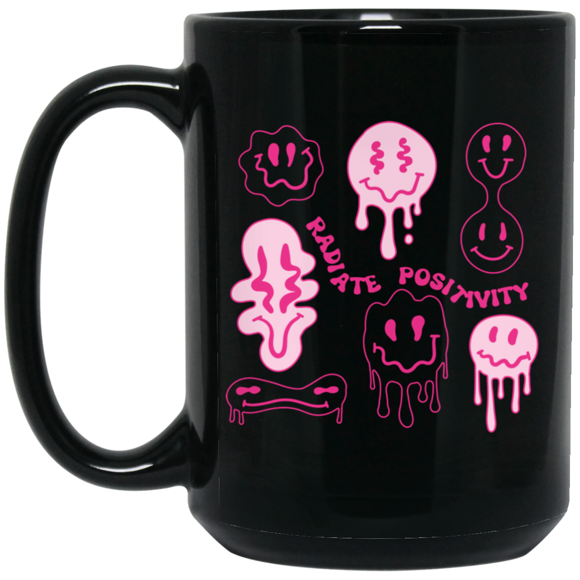 Radiate Positivity, Groovy Smile Face, Radiate Positivity Energy Black Mug