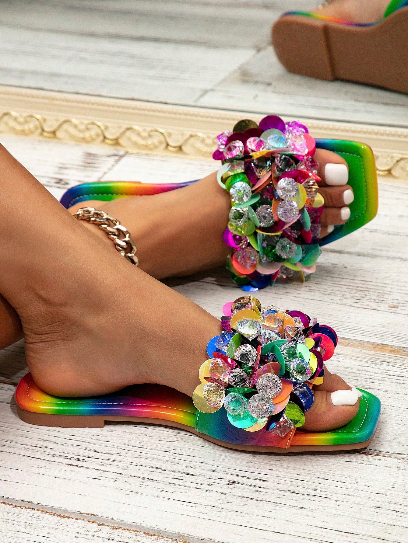 Rainbow Sparkle: High-End Comfort Women's Slippers for Summer