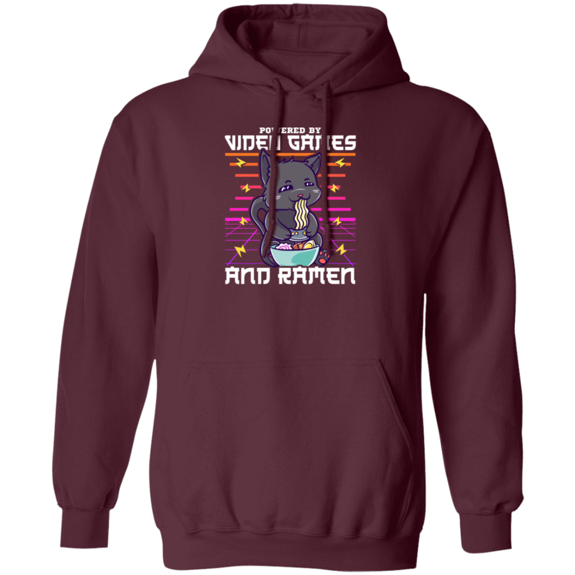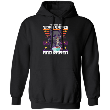 Ramen Anime Cat, Powered By Video Games Pullover Hoodie