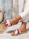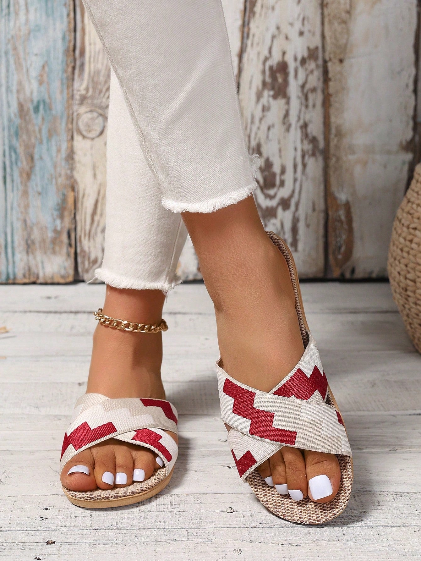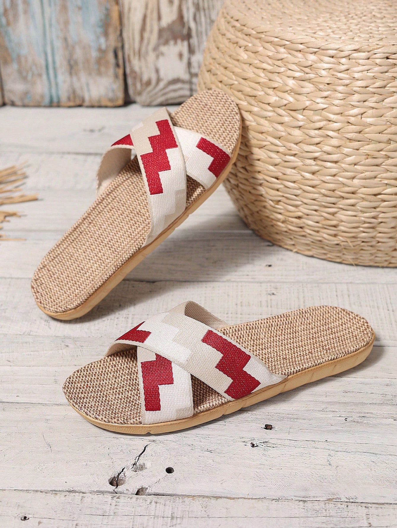 Red Crisscross Band Linen Slippers: A Stylish Summer Couple's Choice