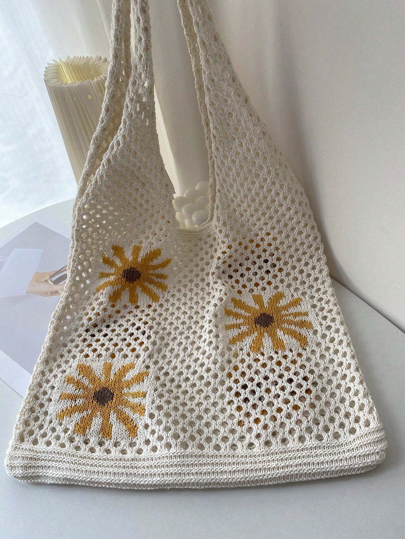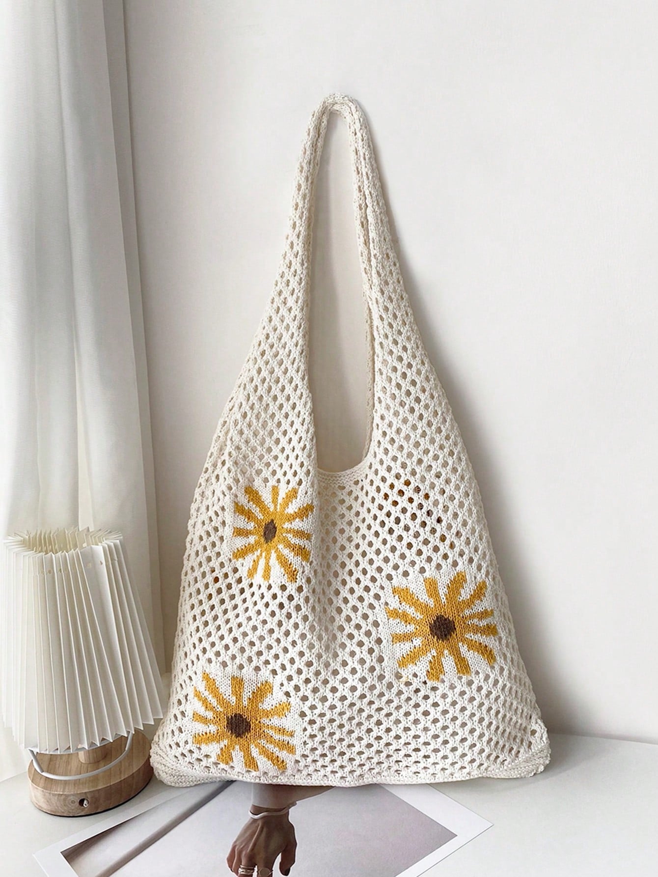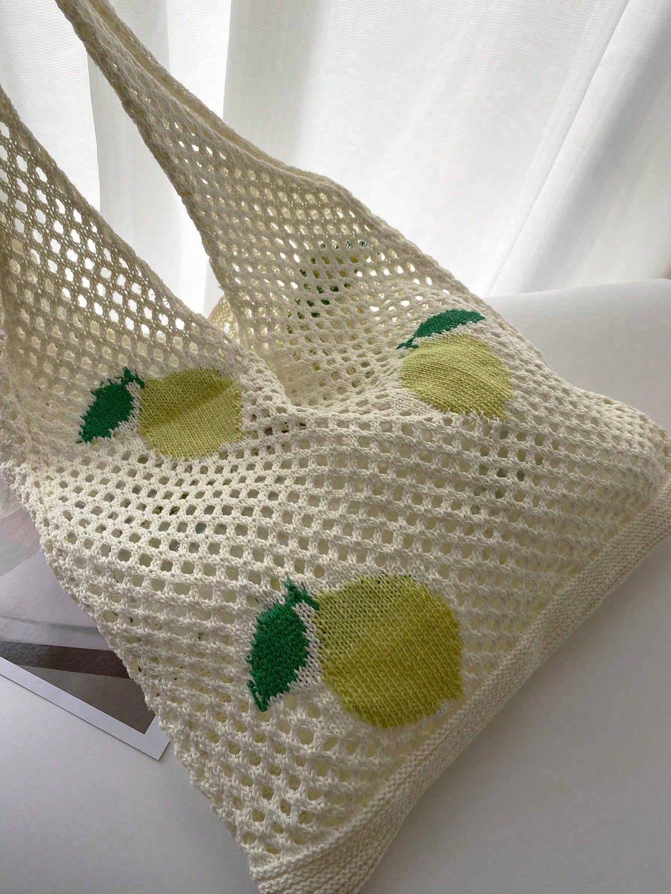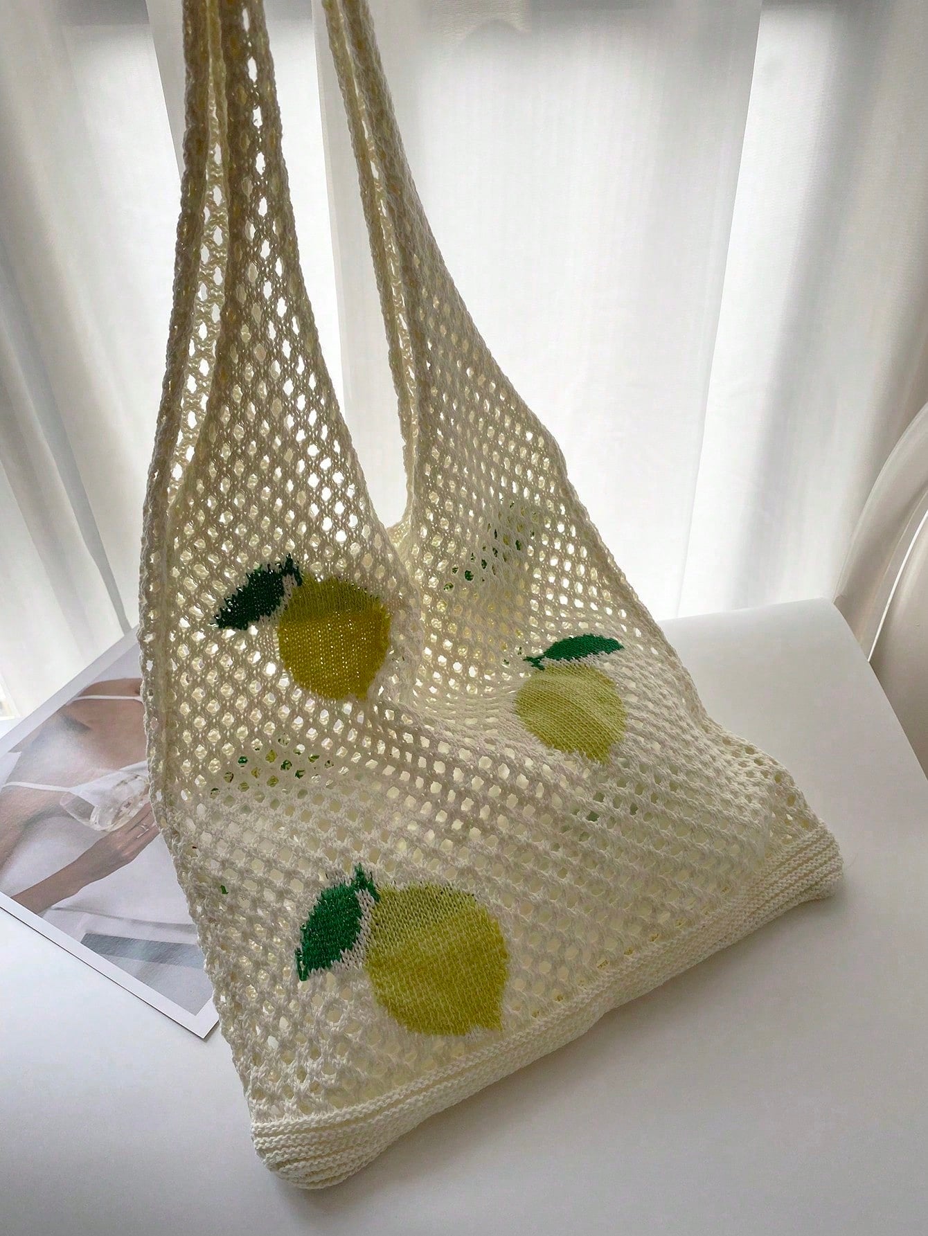 Refreshing Lemon Beach Style Knitted Tote Bag for Women