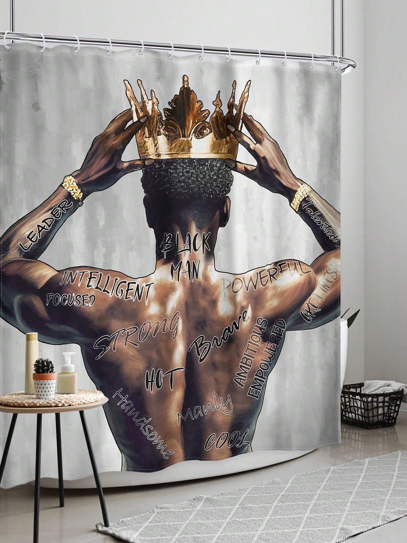 Introduce regal flair into your bathroom with our African-inspired shower curtain set featuring a striking silhouette of a man wearing a crown. Designed with waterproof fabric, this set not only adds a touch of style but also offers practical benefits for a worry-free shower experience.