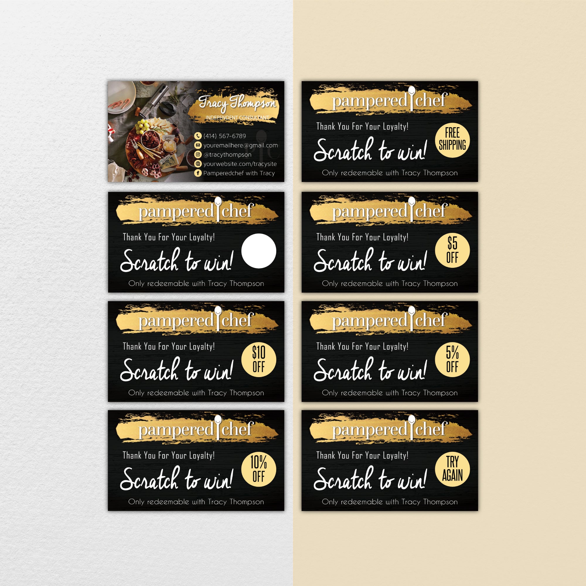 Restaurant Pampered Chef Scratch To Win, Personalized Pampered Chef Business Cards PPC13.