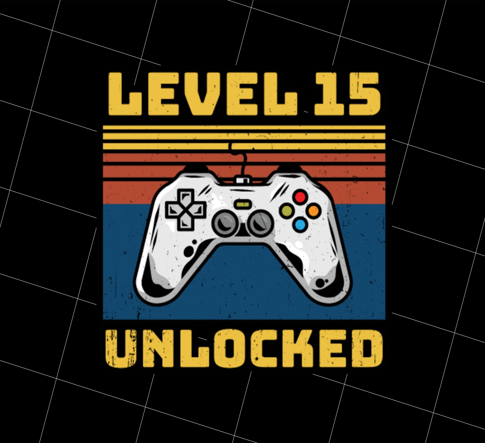 Retro 15th Birthday Gaming Png, Gamer 15 Years Gift Png, 15th Gift, Png Printable, Digital File