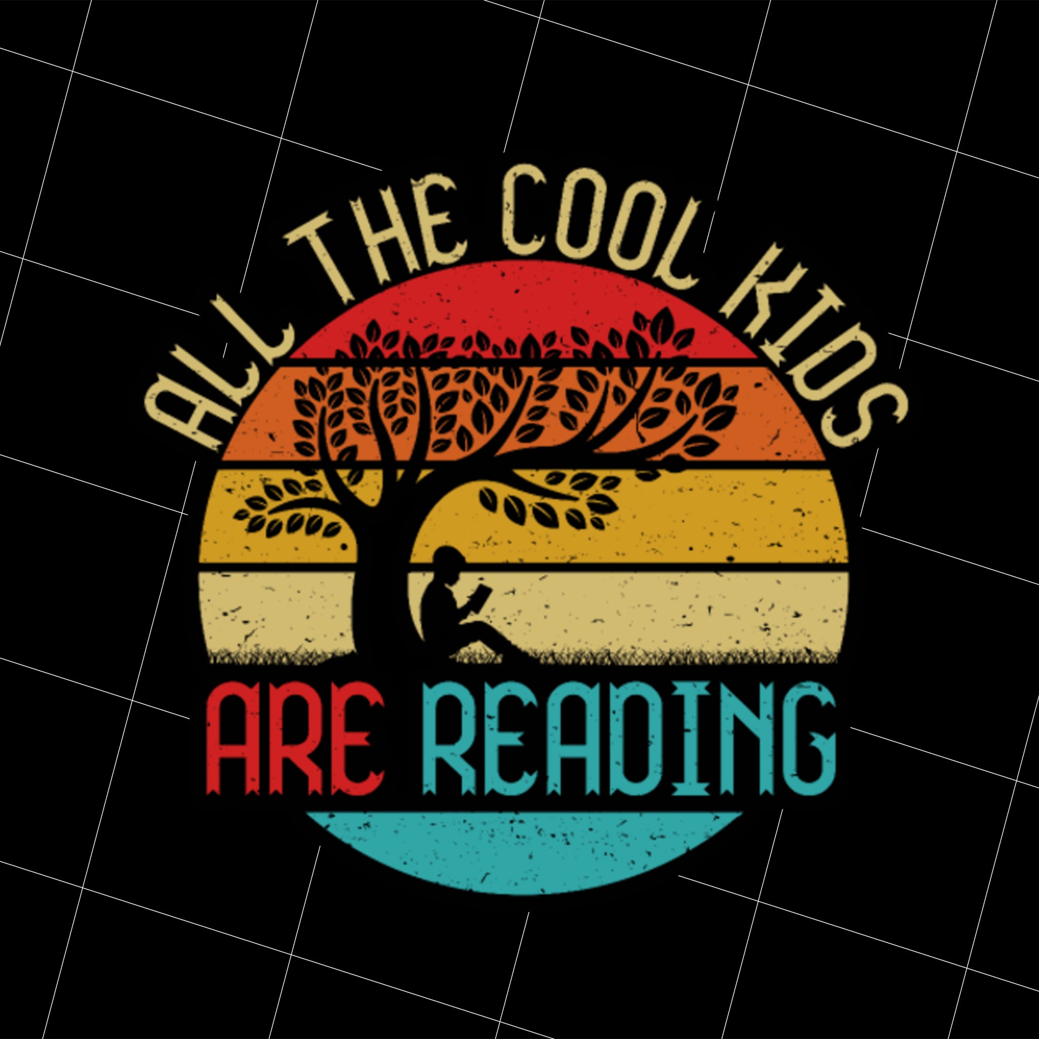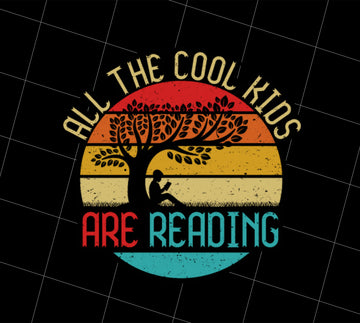 Retro All The Cool Kids Are Reading Book Vintage Png, Reading Book Png, Kid Love Book Png, Under The Tree Png, PNG Printable, DIGITAL File