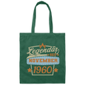 Retro Birthday Legendary Since November 1960 Gift Canvas Tote Bag