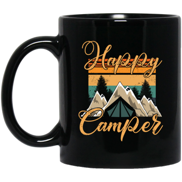 Retro Camping, Happy Camper Vintage Black Mug