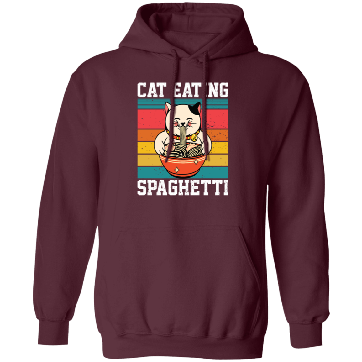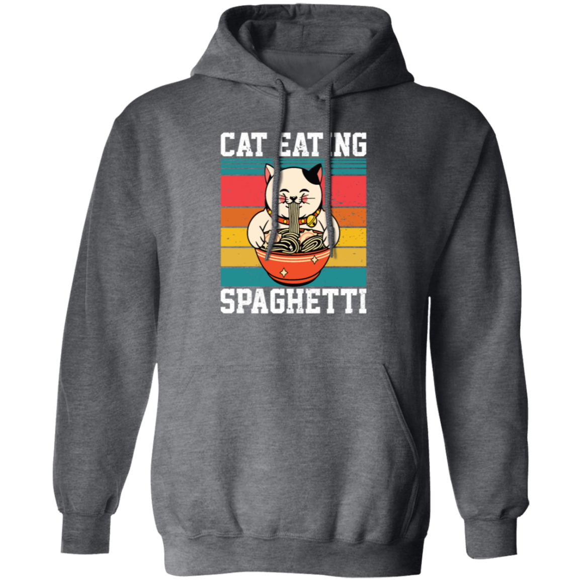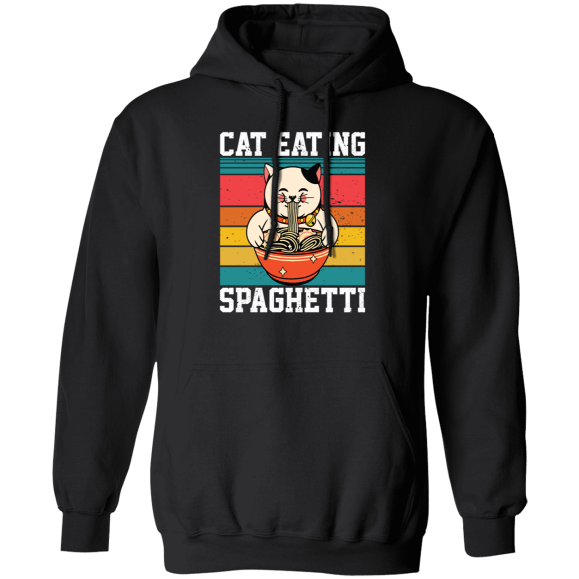 Retro Cat Lover, Cat Eating Spaghetti, Japanese Spaghetti, Love Ramen Pullover Hoodie