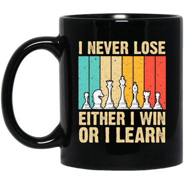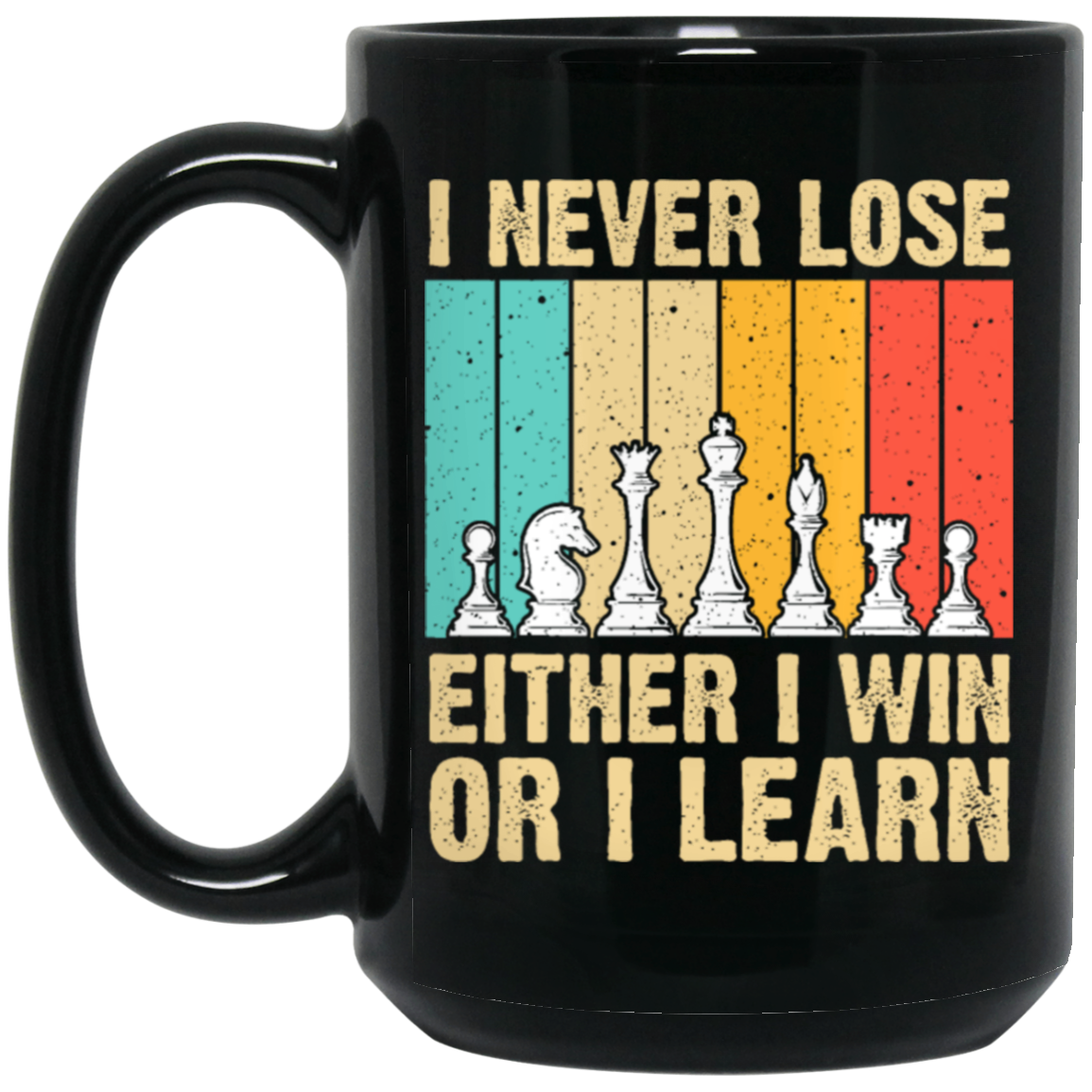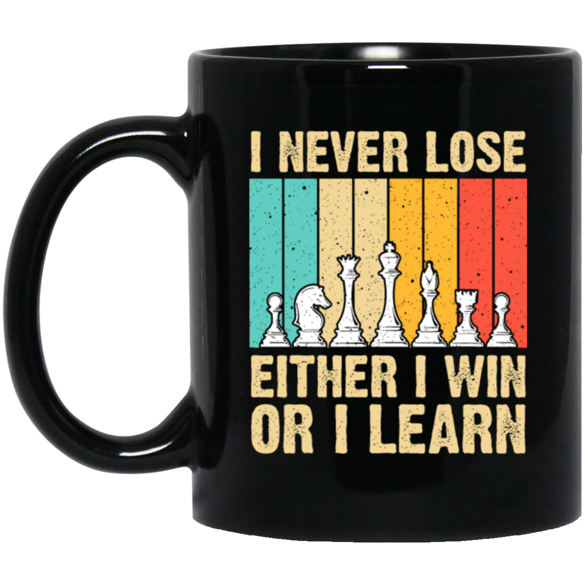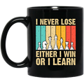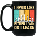 Retro Chess Gift, I Never Lose Either I Win Or I Learn, Love To Learning Chess Black Mug