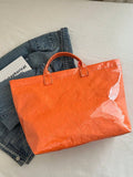 This Retro Chic PVC Tote Bag is perfect for college students, travelers, and fitness enthusiasts. With its large capacity and transparent jelly material, it combines style and practicality. Stay organized and stand out with this trendy bag.