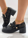 Retro Chic: Women's High Heel Formal Shoes with Plaid & Patchwork Detailing