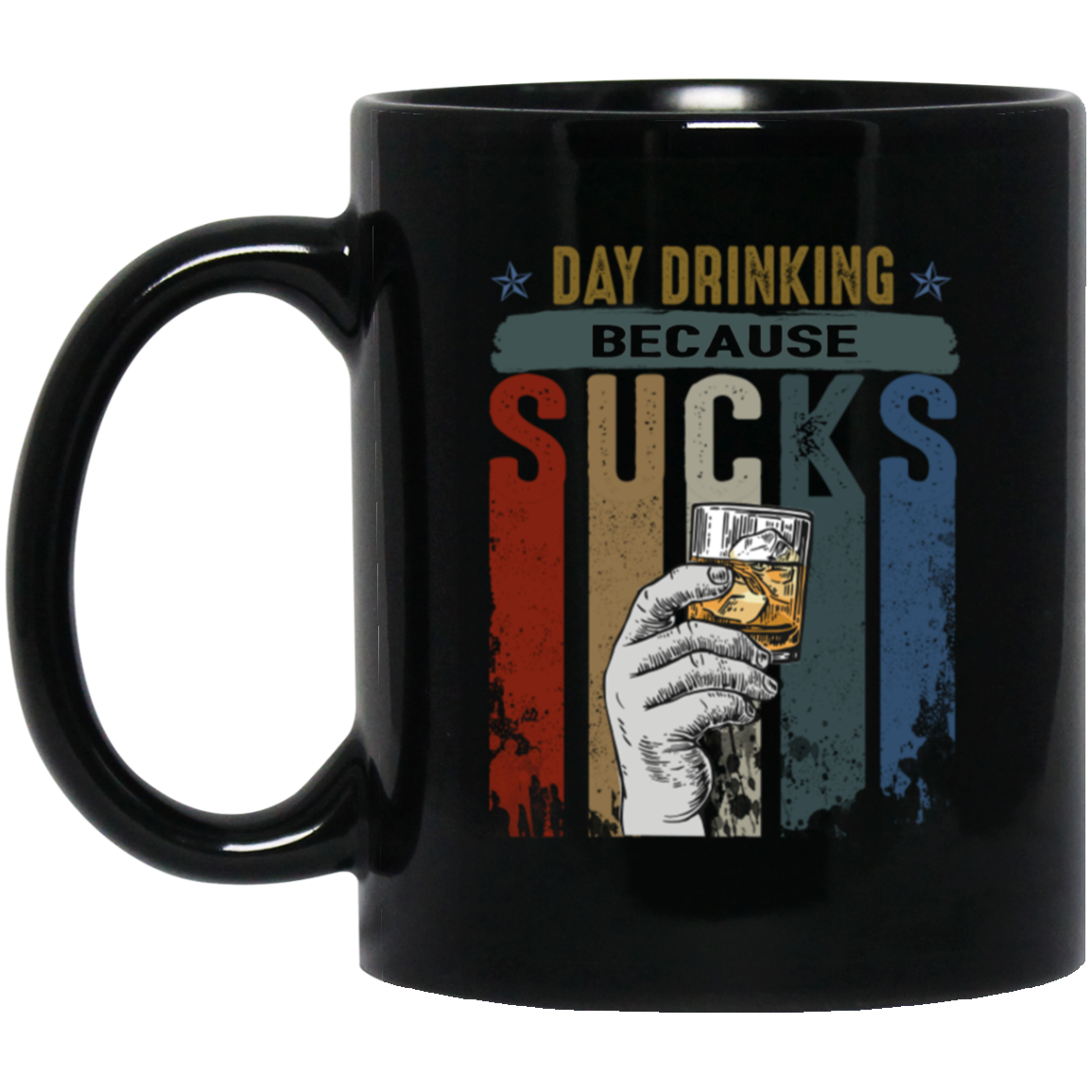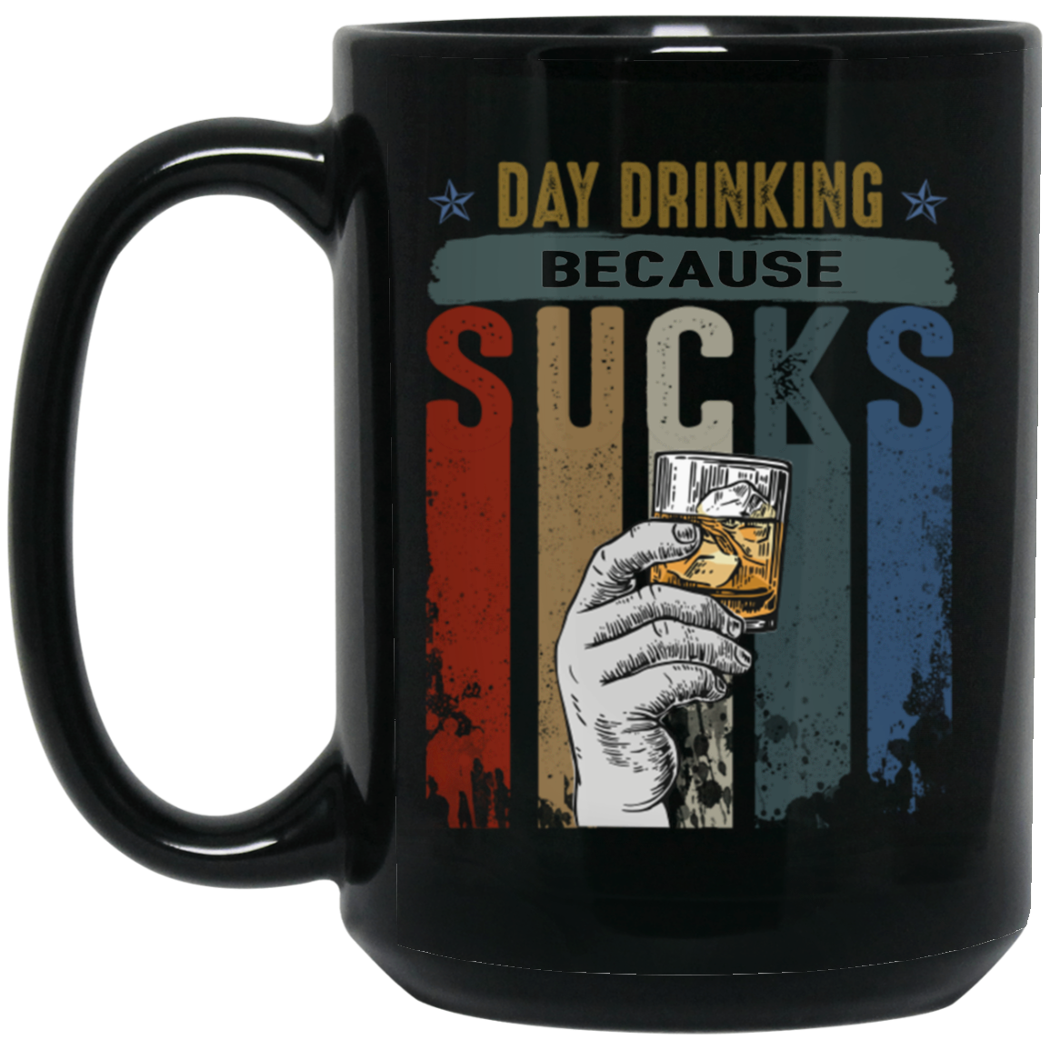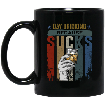 Retro Day Drinking Because Sucks Vintage Black Mug