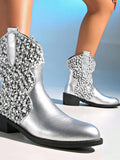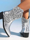 Retro Glam Silver Metallic Knee-High Boots with Spike Heel – Bold Fashion Statement for Women