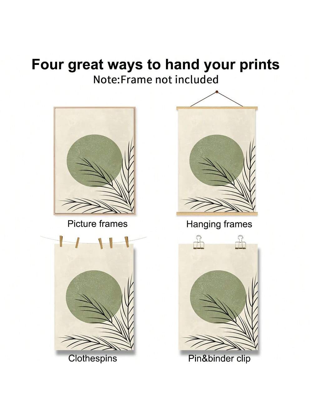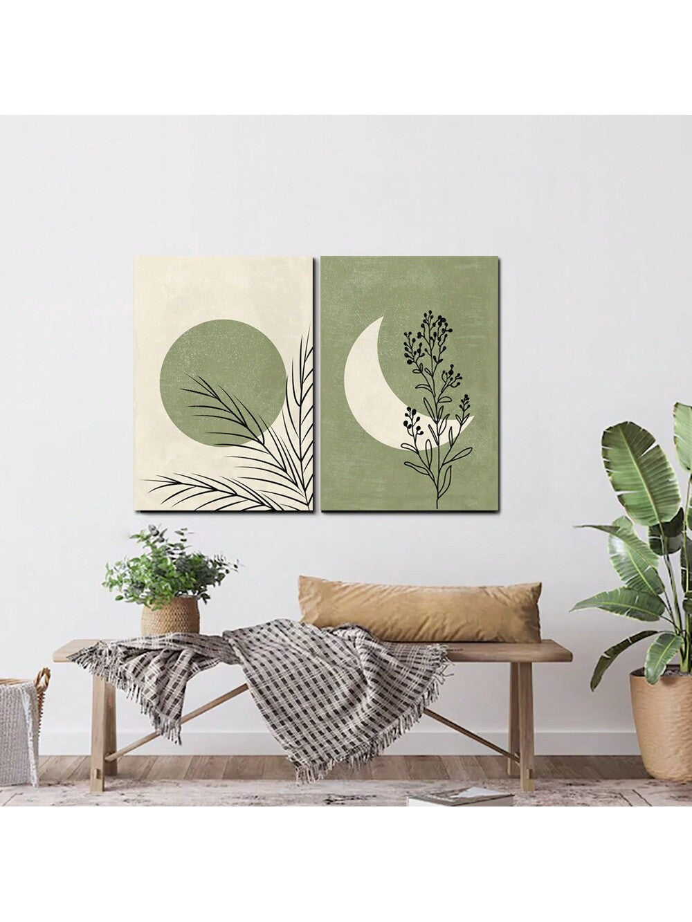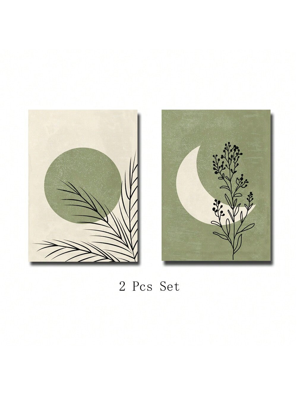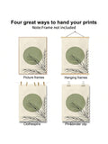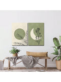 Retro Green Moon and Leaf Art Poster Canvas Print Set - Modern Neutral Wall Art for Home Decor