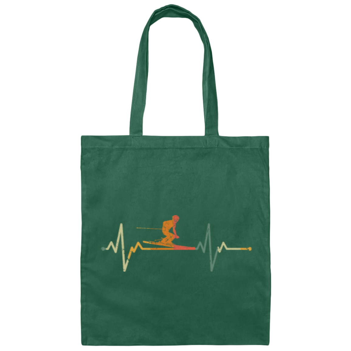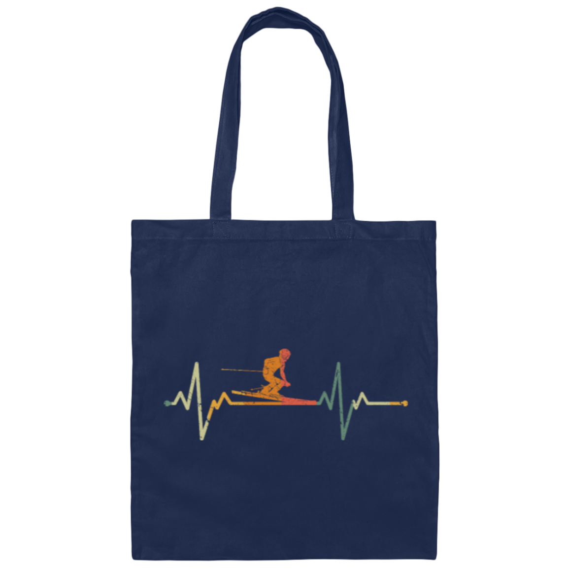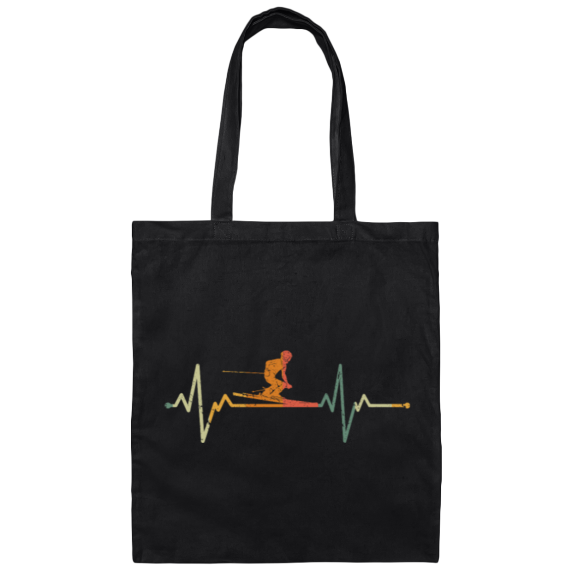 Retro Heartbeat Ski Gift Idea, Winter Sports Canvas Tote Bag