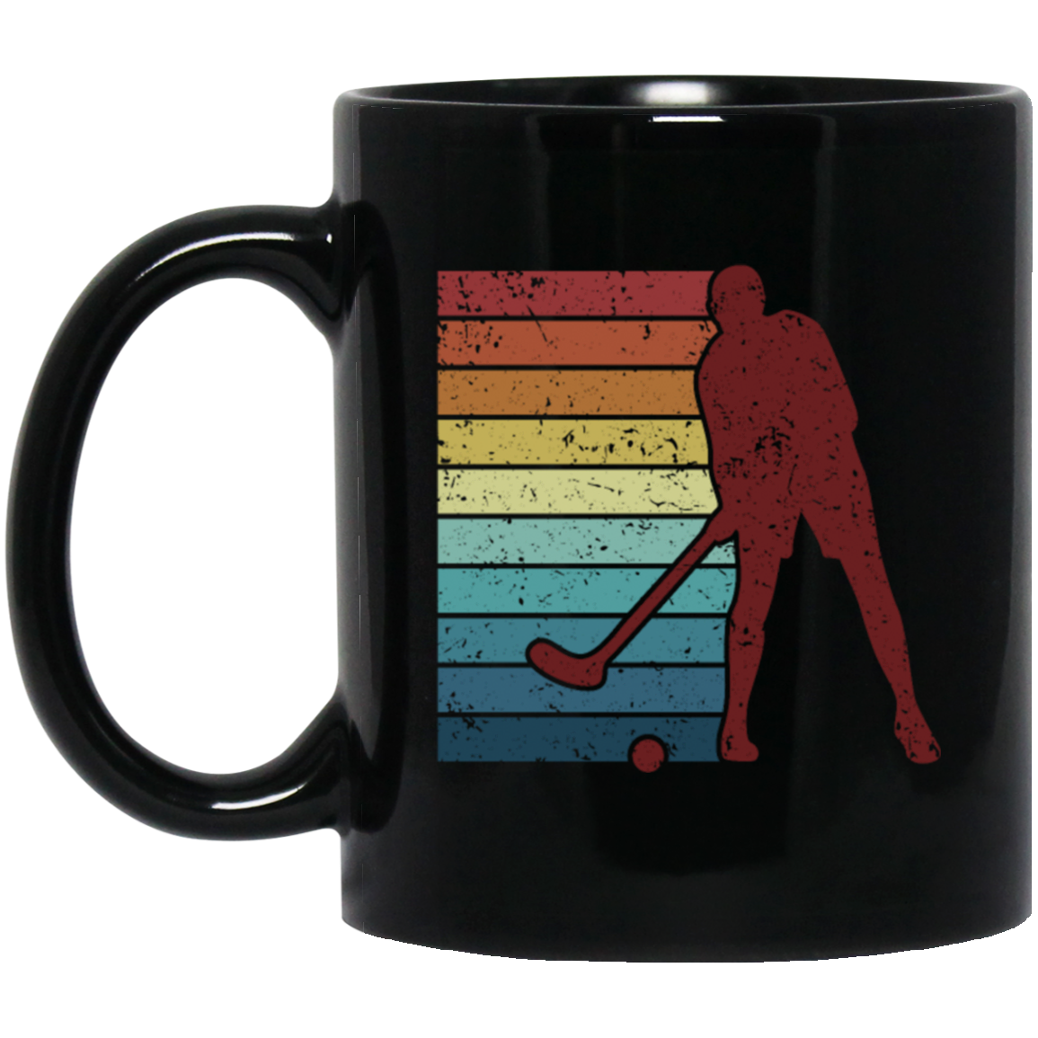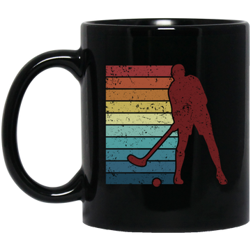Retro Hockey Player, Field Hockey Indoor Hockey Black Mug