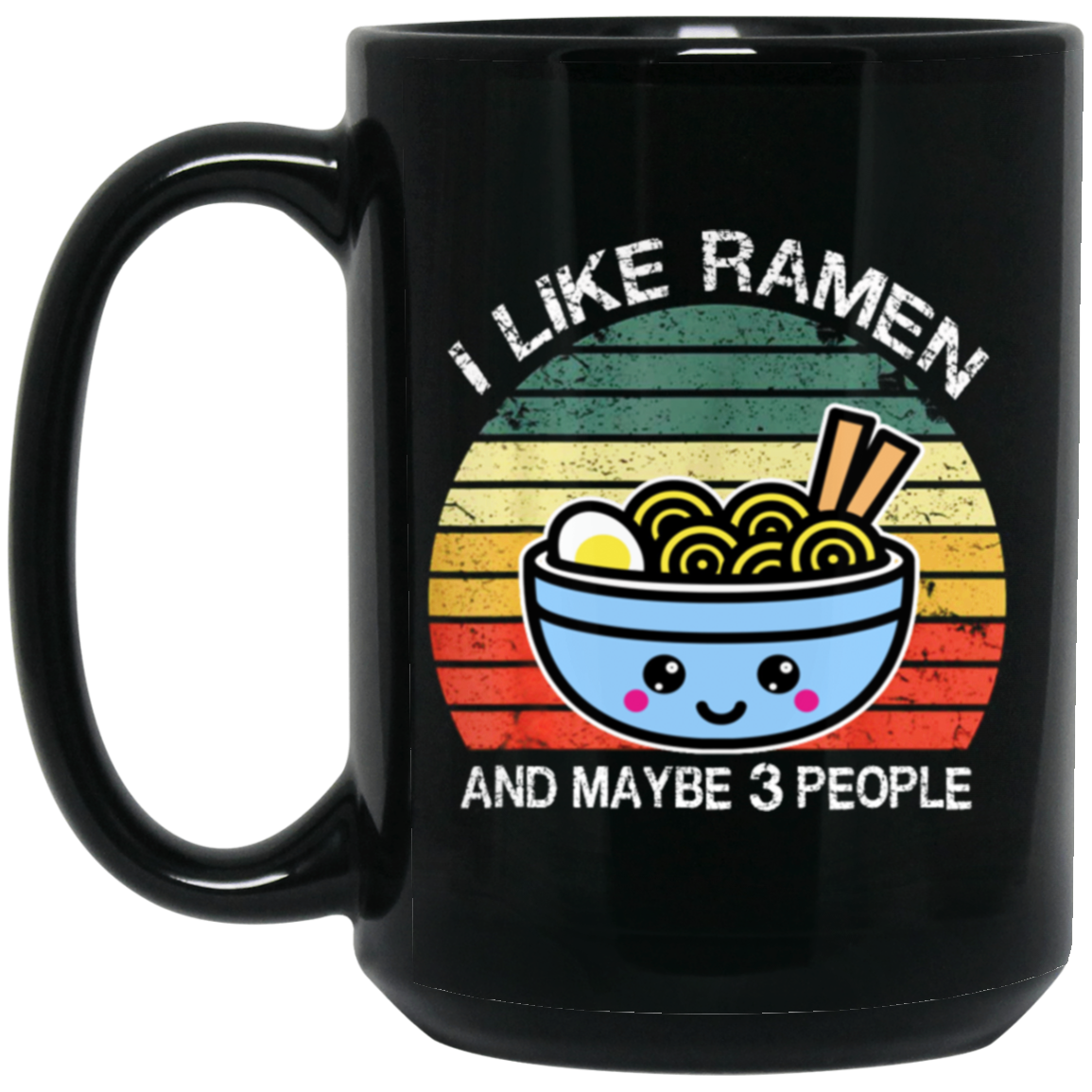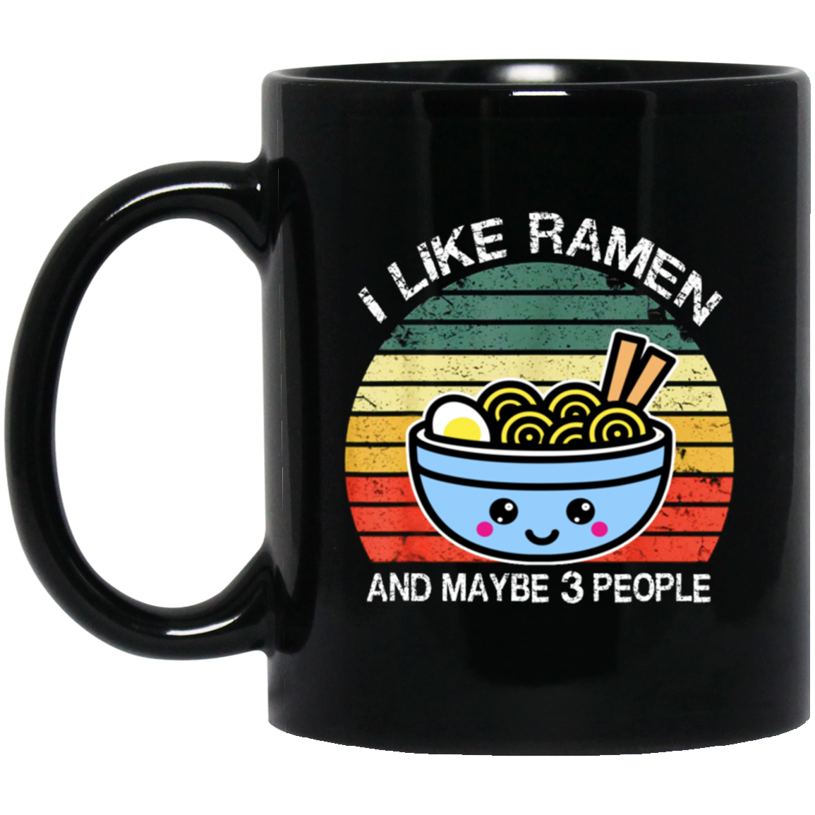 Retro I Like Ramen And Maybe 3 People Black Mug