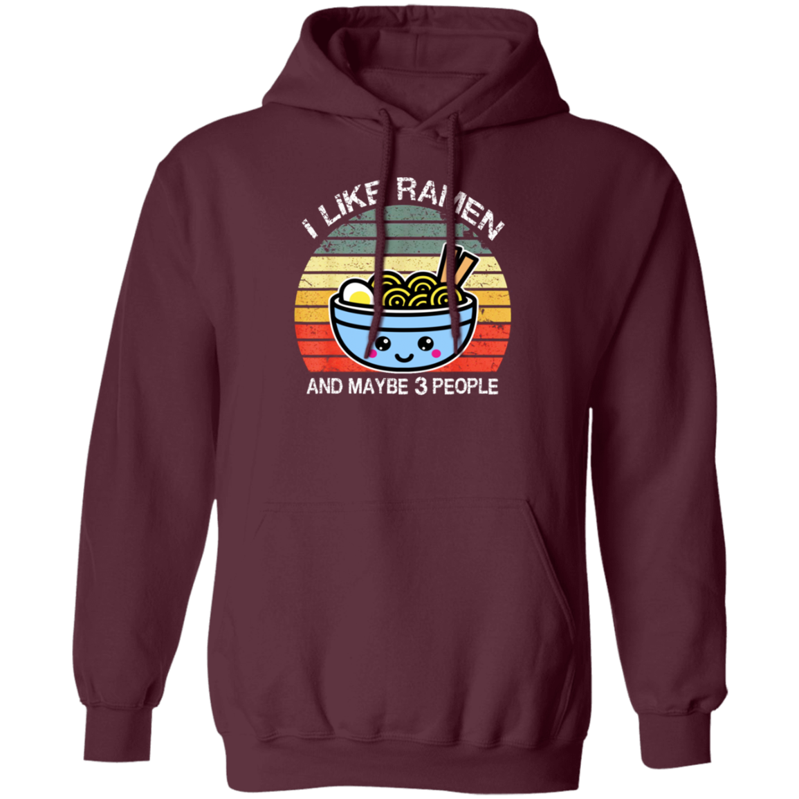 Retro I Like Ramen And Maybe 3 People Pullover Hoodie