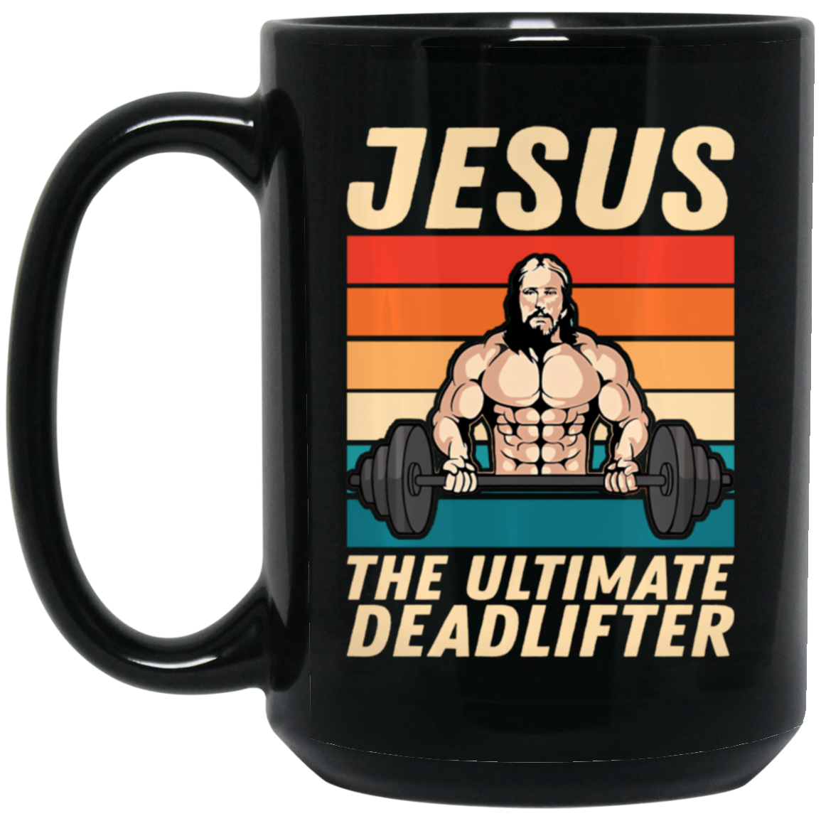 Retro Jesus Gift, Jesus The Ultimate Deadlifter, Jesus Vintage, My Jesus Black Mug
