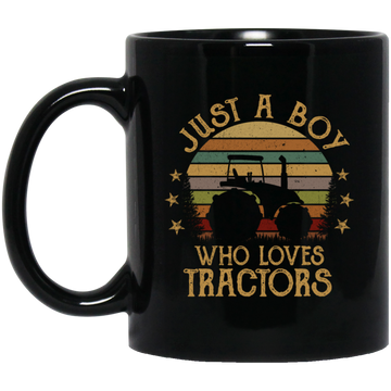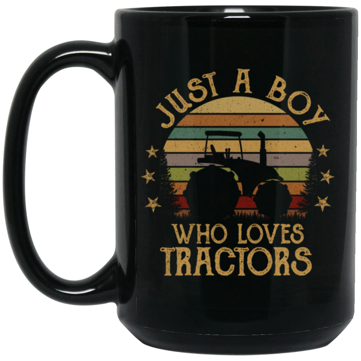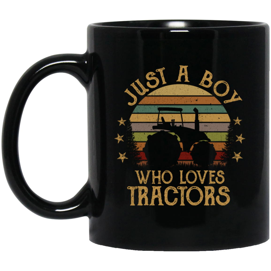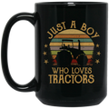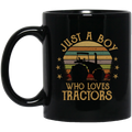Retro Just a Boy Who Loves Tractors Farm Birthday Kids Black Mug