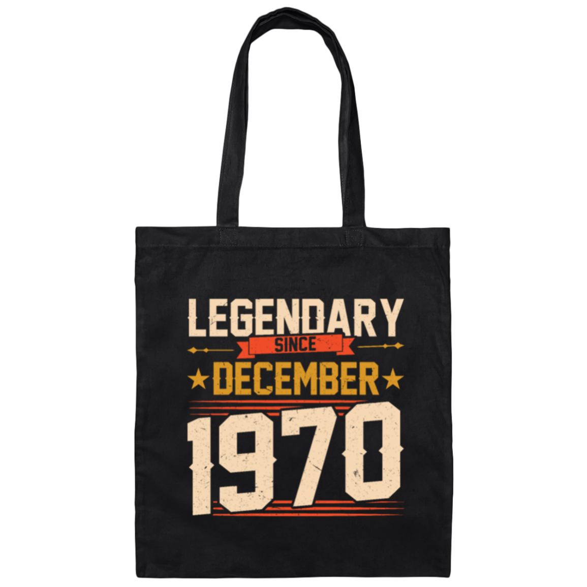Retro Legendary Since December 1970, Awesome 50th Birthday Gift Canvas Tote Bag