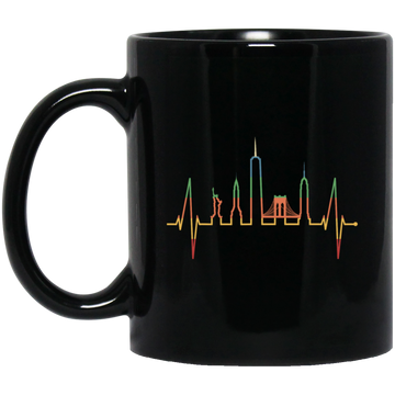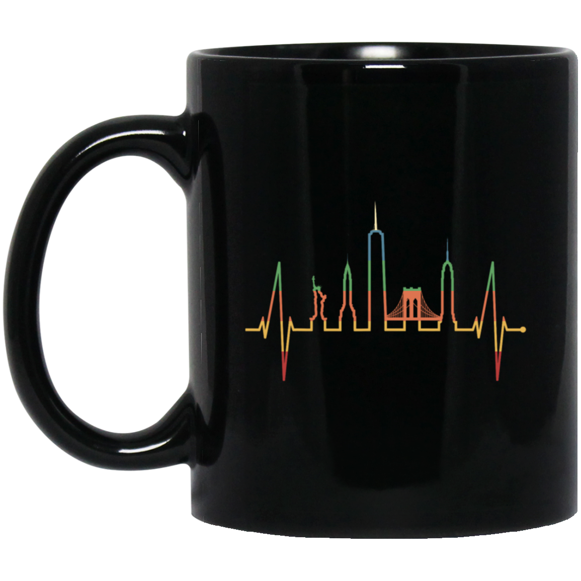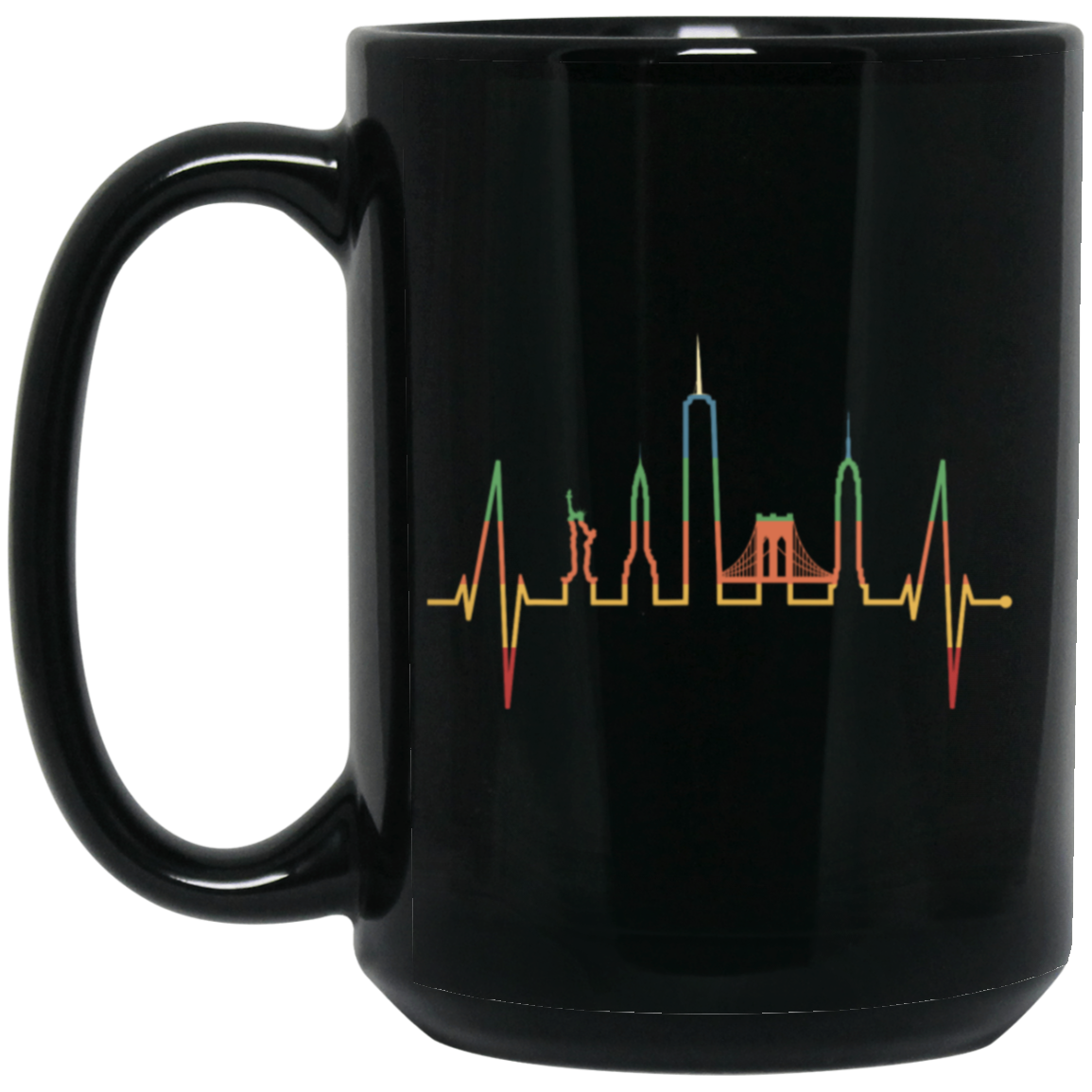Retro New York Skyline Heartbeat Heart Statue Of Liberty